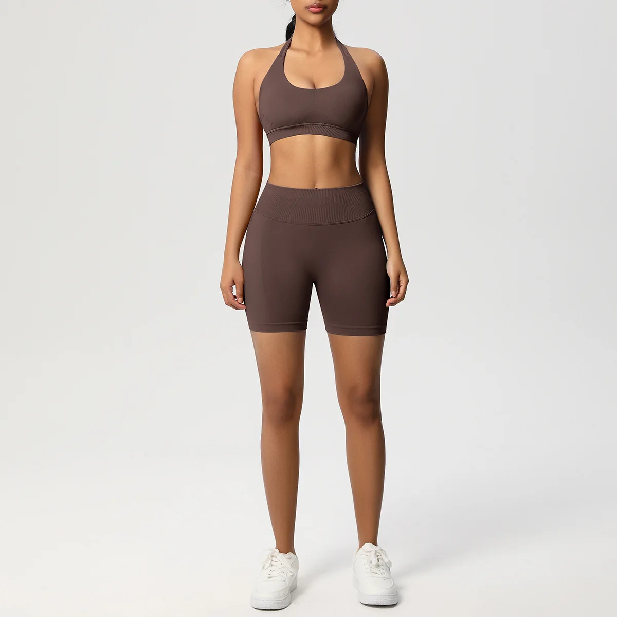 XXL Plus Size Exercise Clothes Sports Bras for Large Chests Seamless Halter Sports Bra Backless Apparel Training Bra Shorts