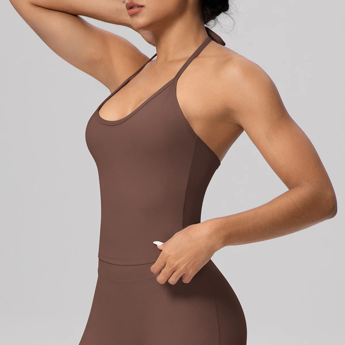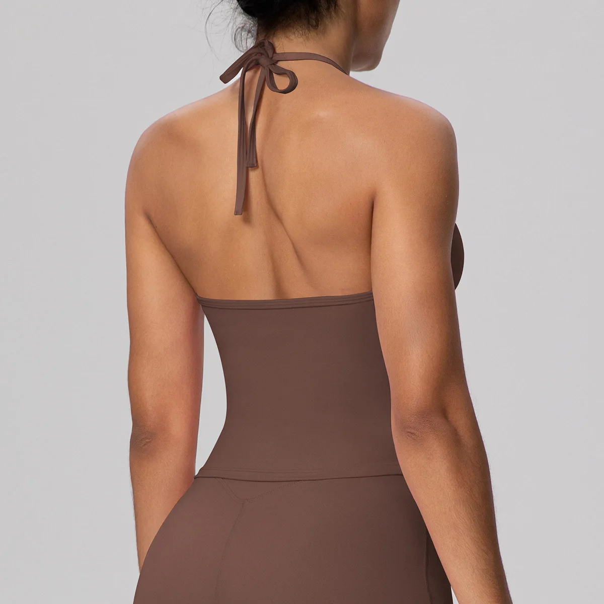 Women's Solid Color Compression Tank Top Asymmetrical Neckline Tie Detail Padded Bra-Quick Dry Skinny Fit Sports Top for Yoga