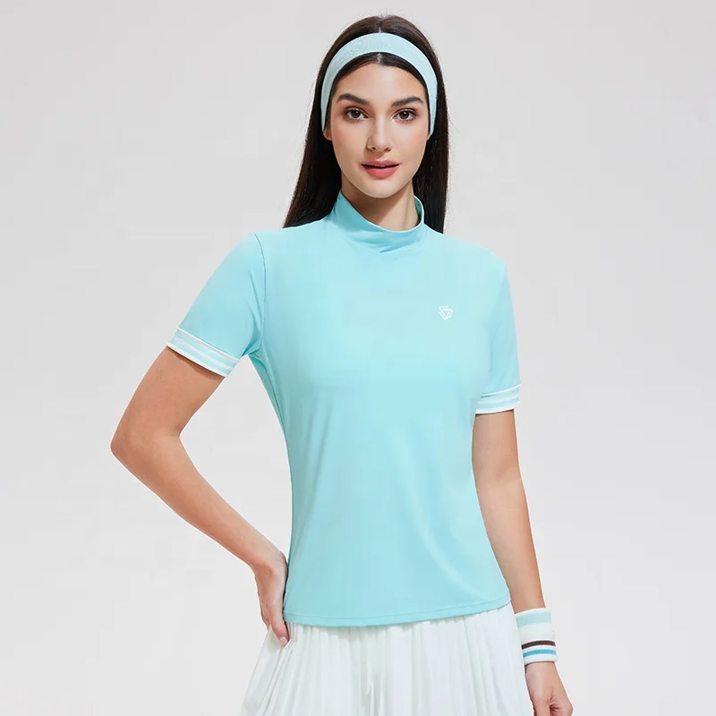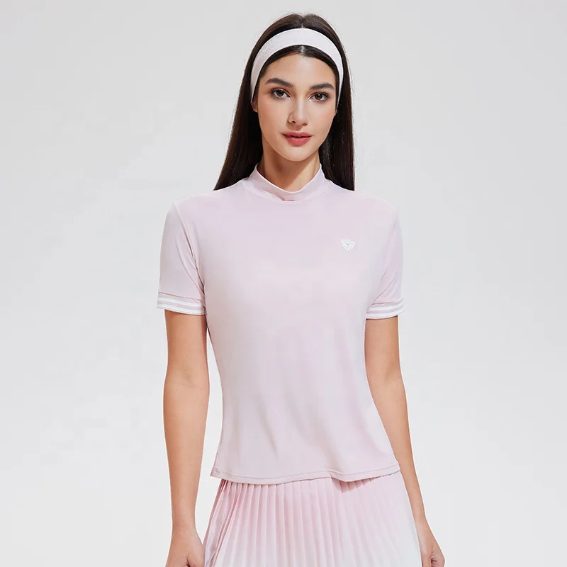 Spandex Nylon Quick Dry Gym Short Sleeve Tennis Badmition Shirts Custom Polo Shirts Women Ribbed Comfort Sport Golf Shirt Women