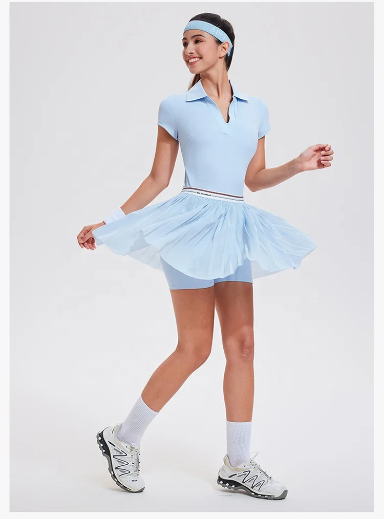 YISHENHON Women's A-Line Tennis Dress Hot Selling Wholesale Sportswear Runninng Suit with Elegant Tennis Skirt