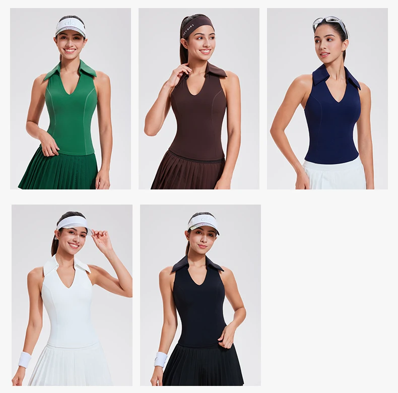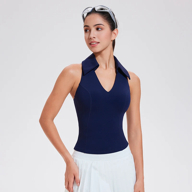 Sport Sleeveless Naked T Shirts Quick Dry Deep V Running Fitness Top Lapel Tennis Polo Shirt Golf Top