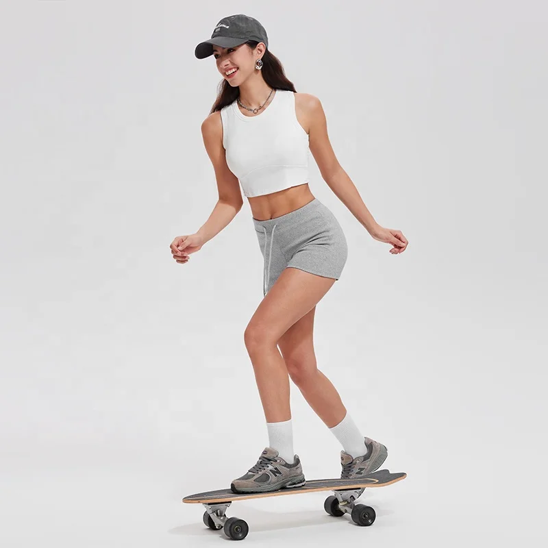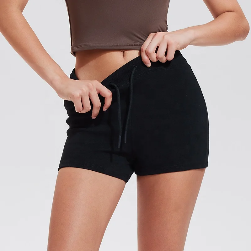 Women's High Waist Yoga Shorts Skinny Fitness Solid Pattern Drawstring Sport Shorts