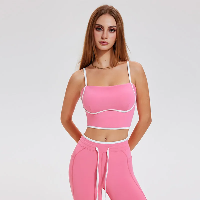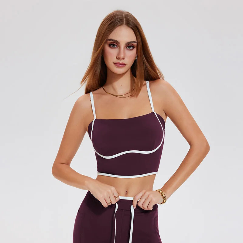 Women's High Quality Slim Fitting Fixed Padded Yoga Crop Top Breathable Contrast Colors Tank Tops Sports Bra