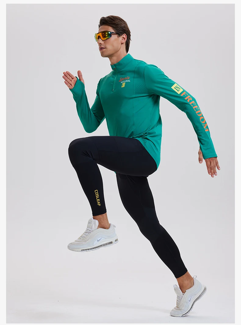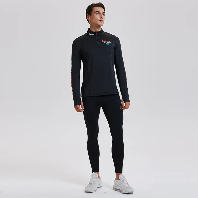Wholesale Men's Quarter Zipper Stand-up Collar Gym Quick Dry Fitness Polyester Training Sports Long Sleeve Shirts