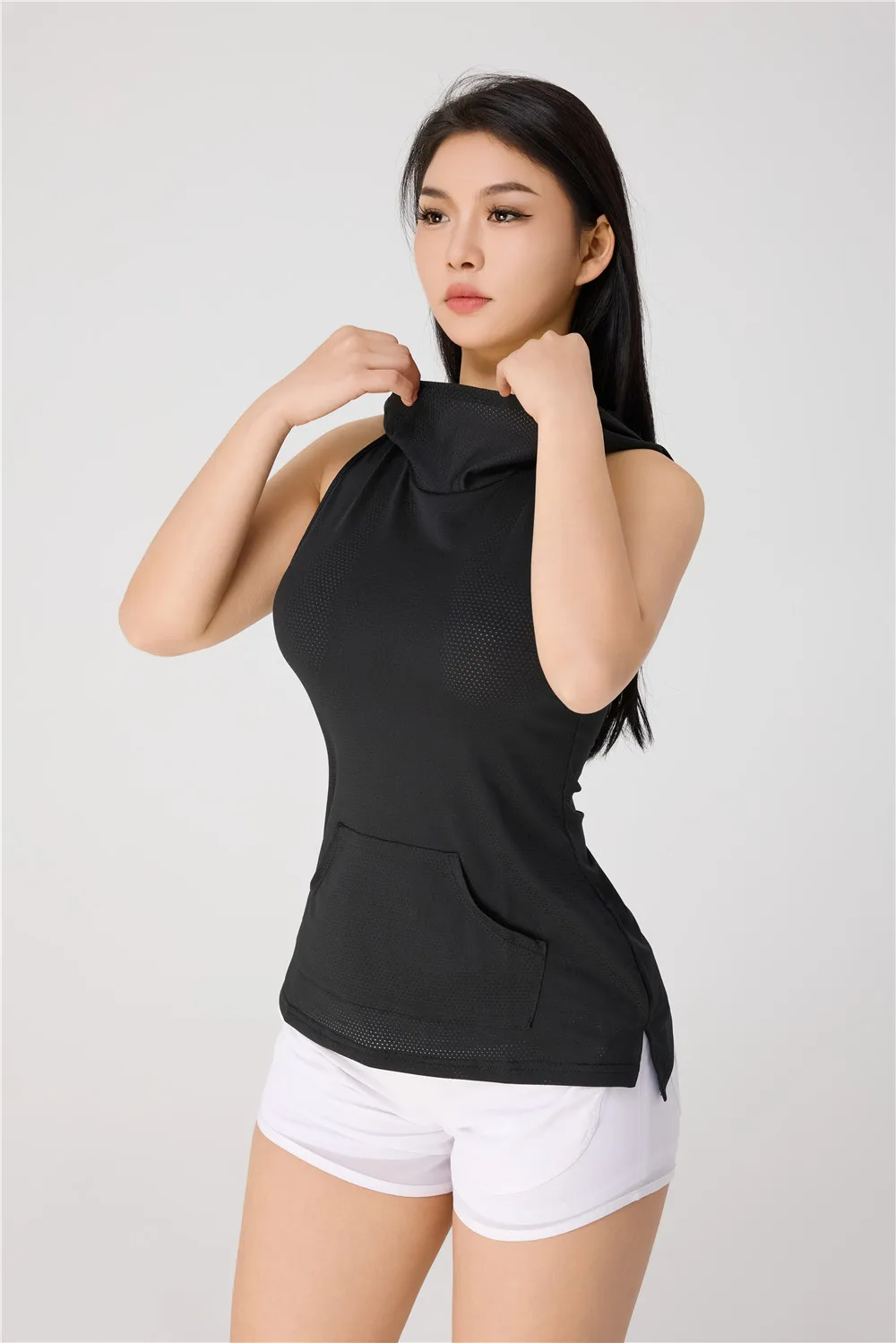 YISHENHON Custom Logo Slim Workout Top Yoga Jackets Zipper Womens Tight Quick Dry Long Sleeve Yoga Sports Coat With a Hat