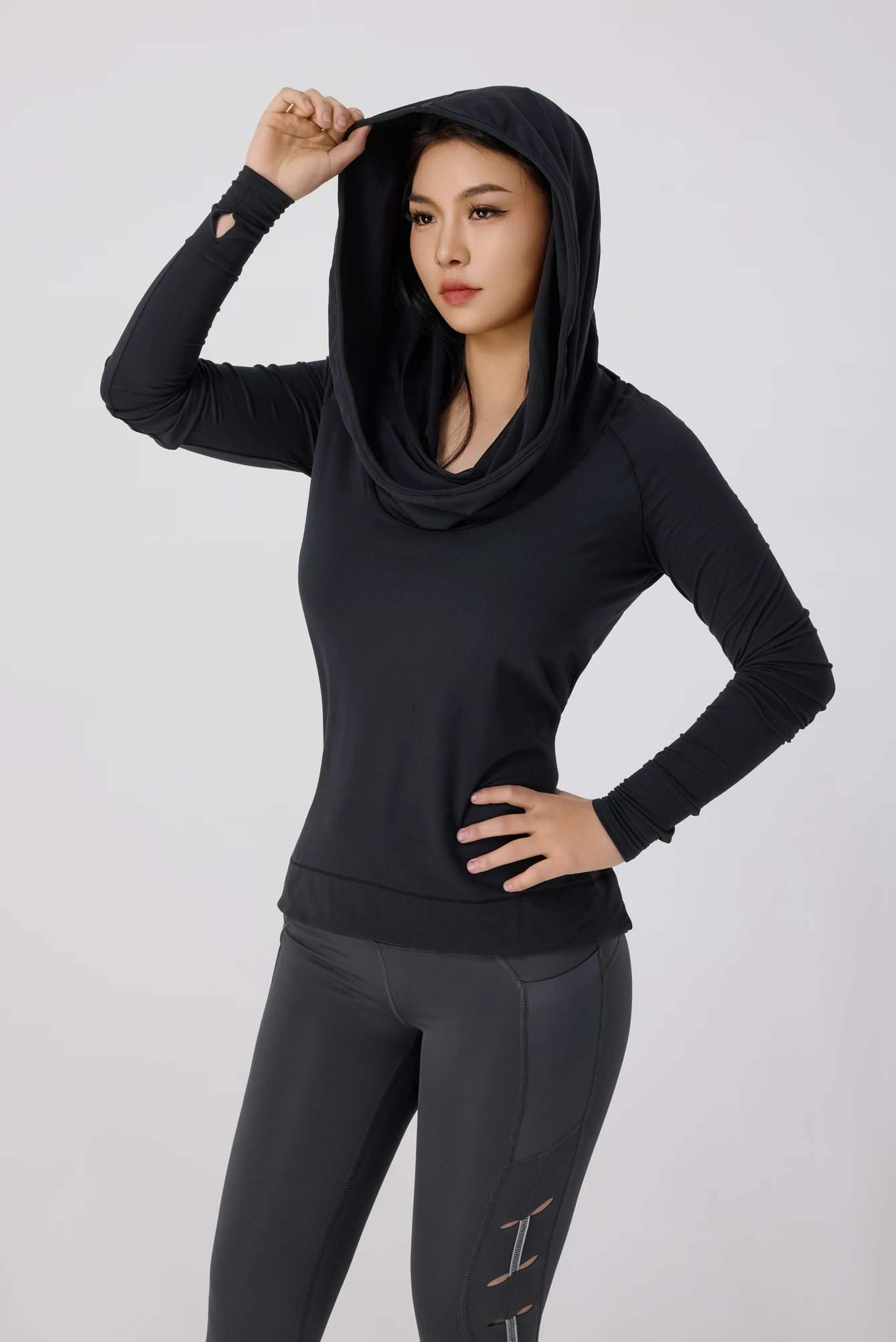 YISHENHON Custom Logo Slim Workout Top Yoga Jackets Zipper Womens Tight Quick Dry Long Sleeve Yoga Sports Coat With a Hat