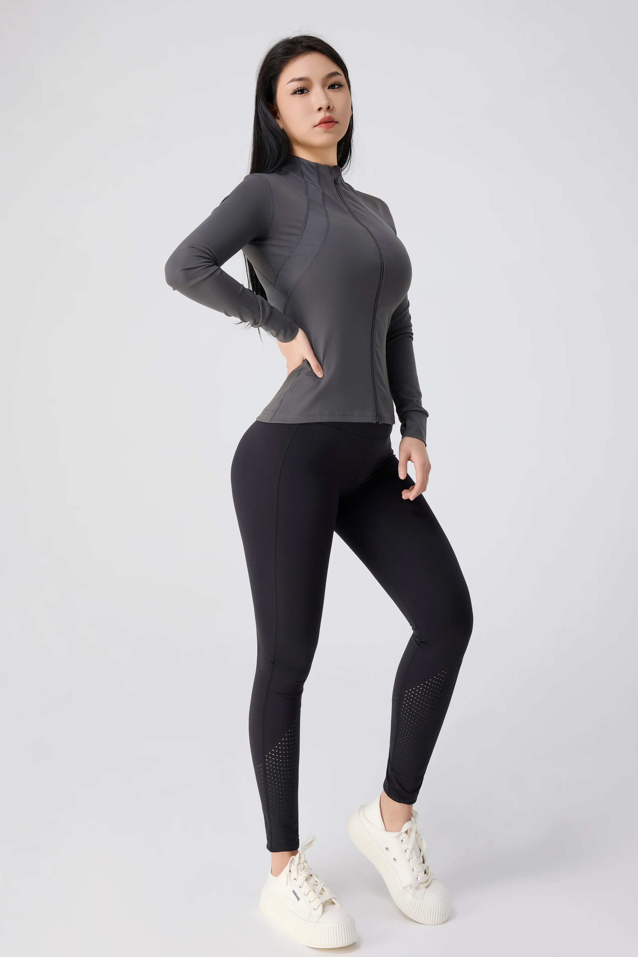 YISHENHON New Arrivals Quick-drying Women's Tight Running Sports Fitness Yoga Jacket Activewear Zip Long Sleeve Workout Crop Top