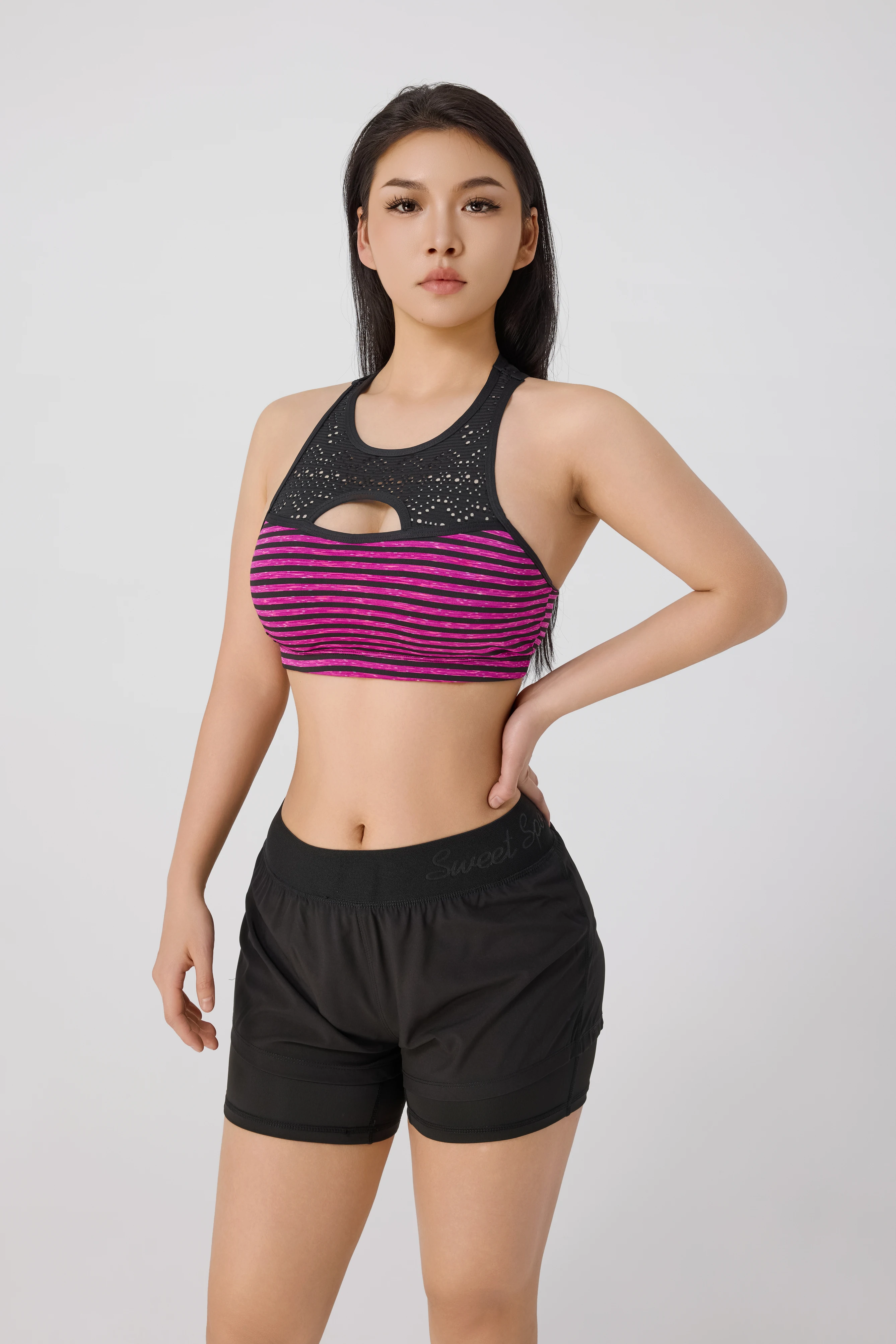 Women's Purple Striped Hollowed-out Sports Underwear Running Sports Yoga Bra Fitness Suit Wholesale Black Shorts Yoga Wear