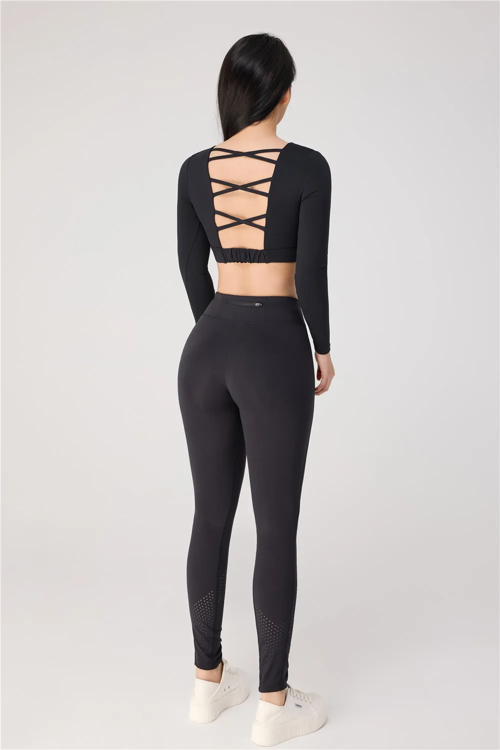 China Supplier Custom 2 Piece Long Sleeves Crop Tank Top and Legging Pant Gym Active Wear Set Women's Gym Clothes Kit