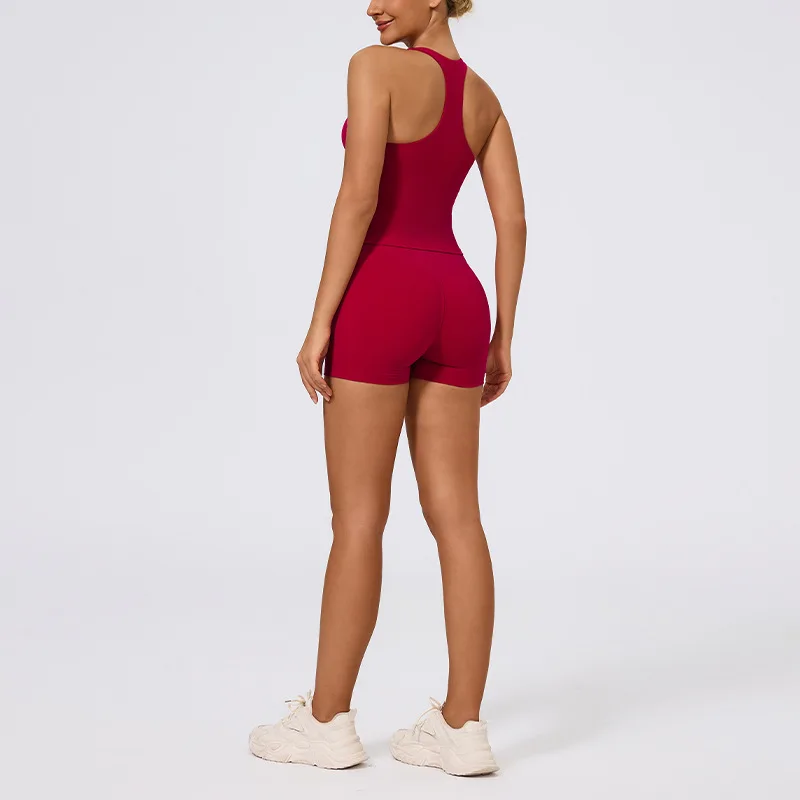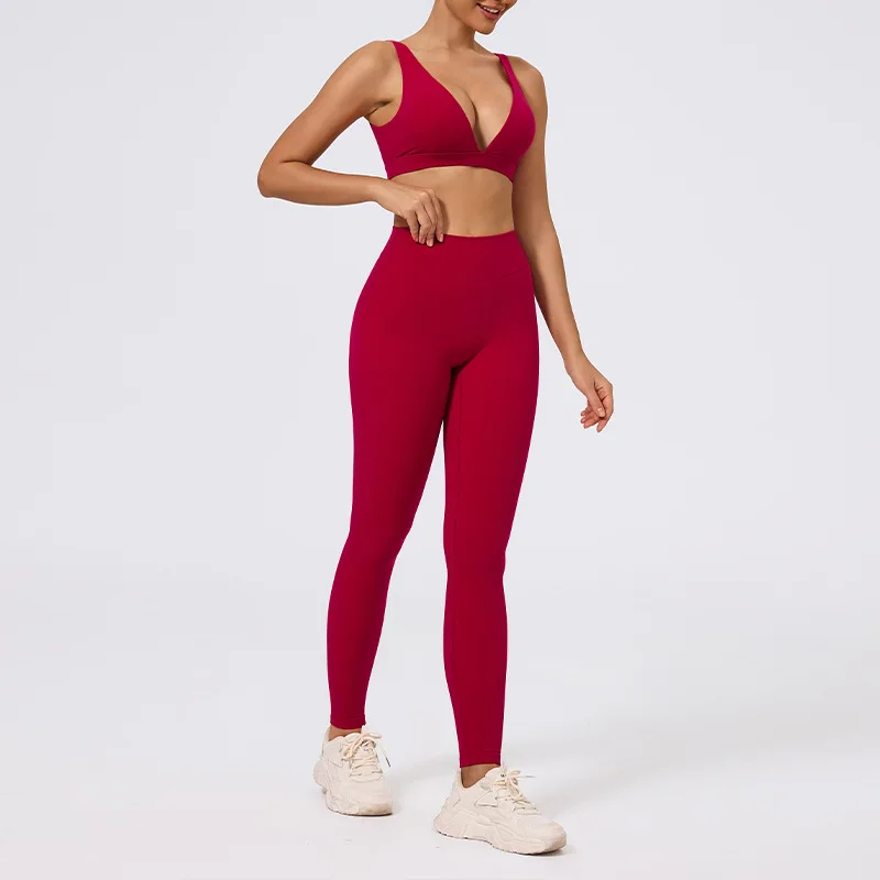 PASUXI Seamless Ribbed Breathable 2 Piece Workout Set Women Nylon Spandex Front Deep V Scrunch Butt Yoga Bra Shorts Gym Wear