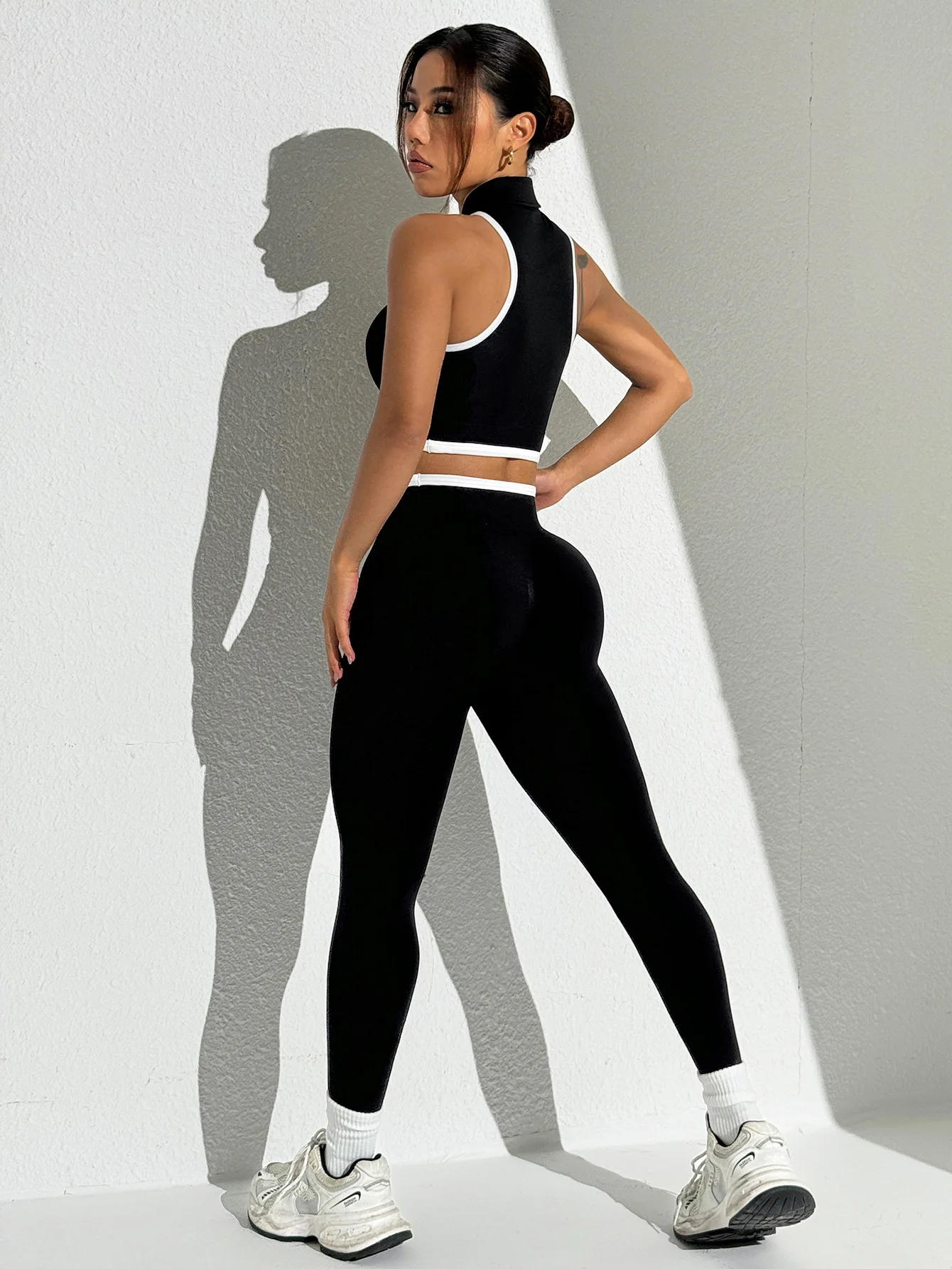 Women's Zipper Sleeveless Running Bra Fitness Long Pants Sports Set Cross-Border New Seamless Solid Quick Dry Breathable Plus