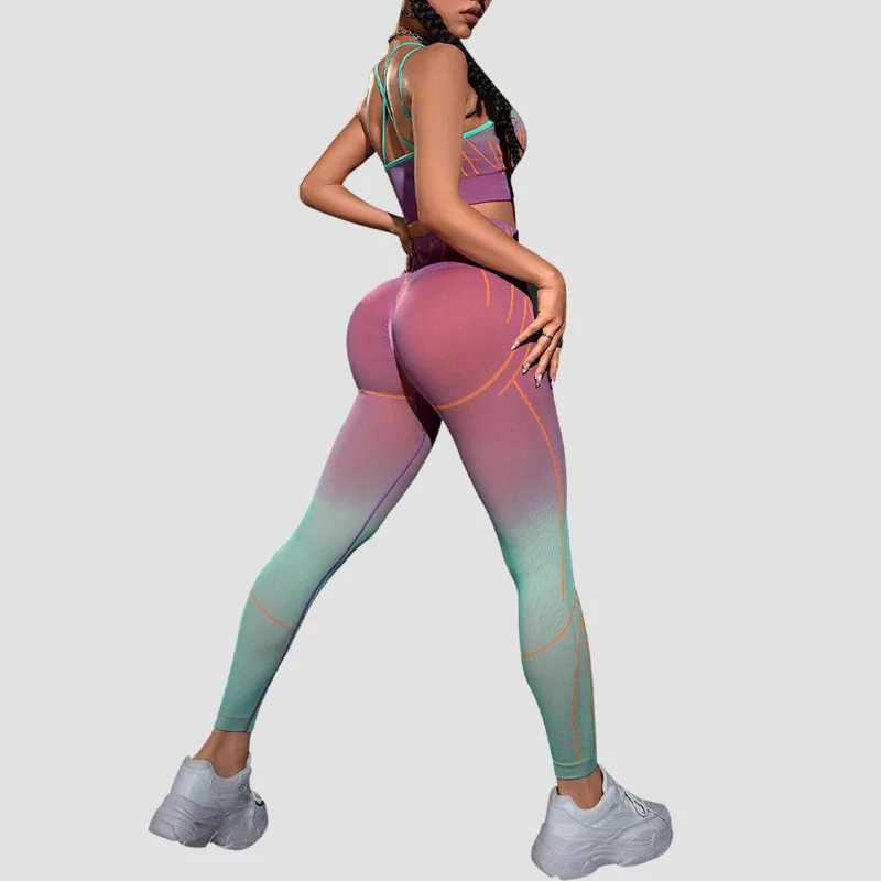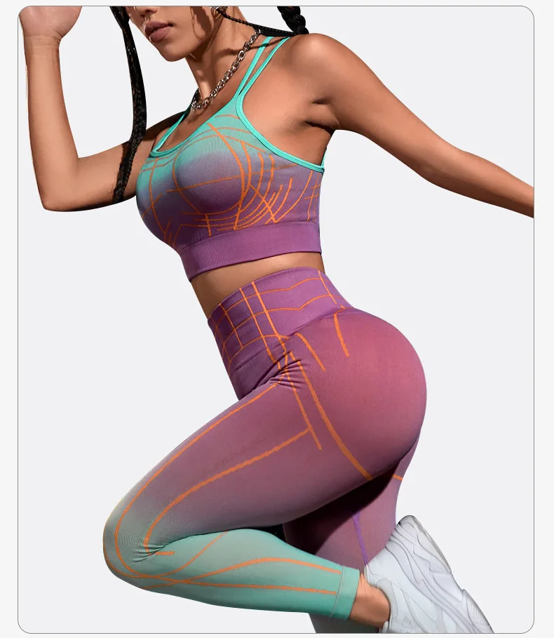 Seamless Sportswear Solid Cross Bra Fitness Strap Running Training High Waisted Quick Dry 2-Piece Running Pants Work Sets Women