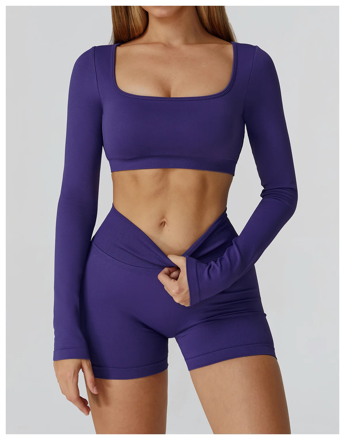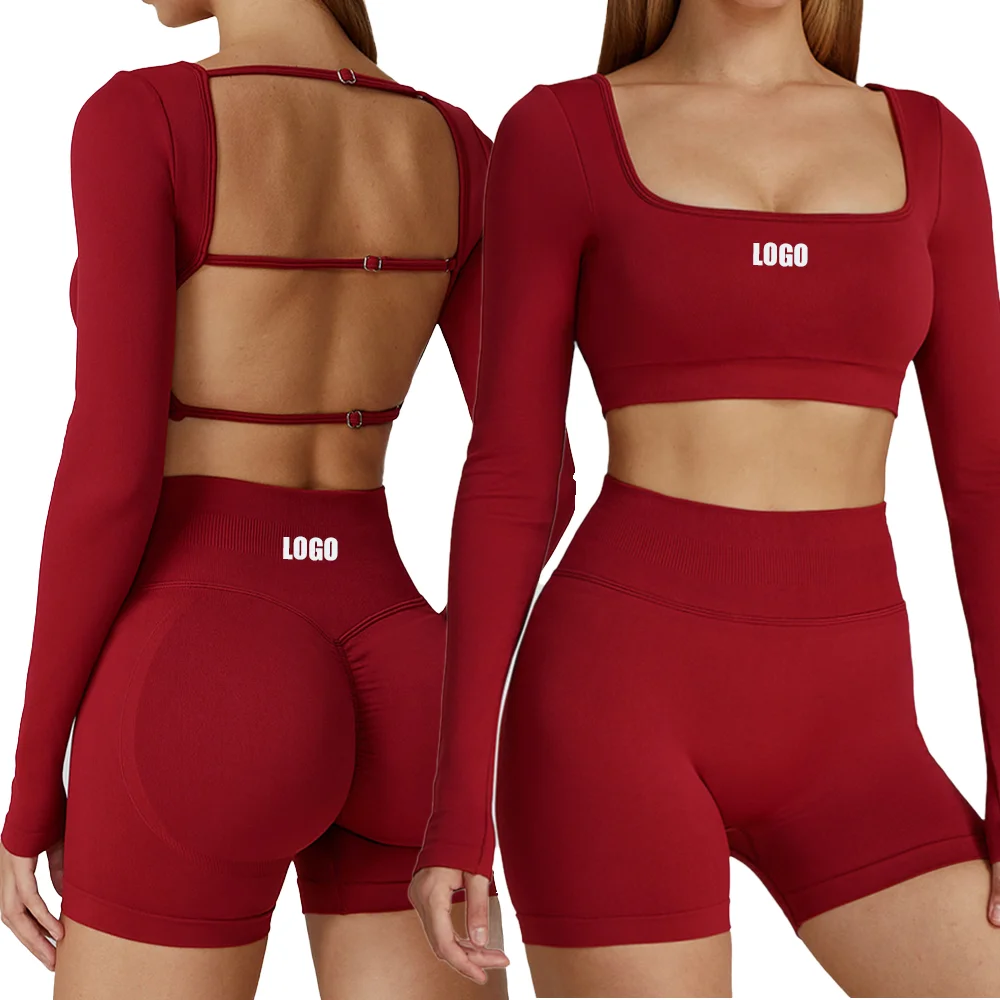 2026 New Arrival High Quality Gym Sports Fitness Yoga Athletic Top Short Leggings Set for Women Quick Dry Solid Pattern Front