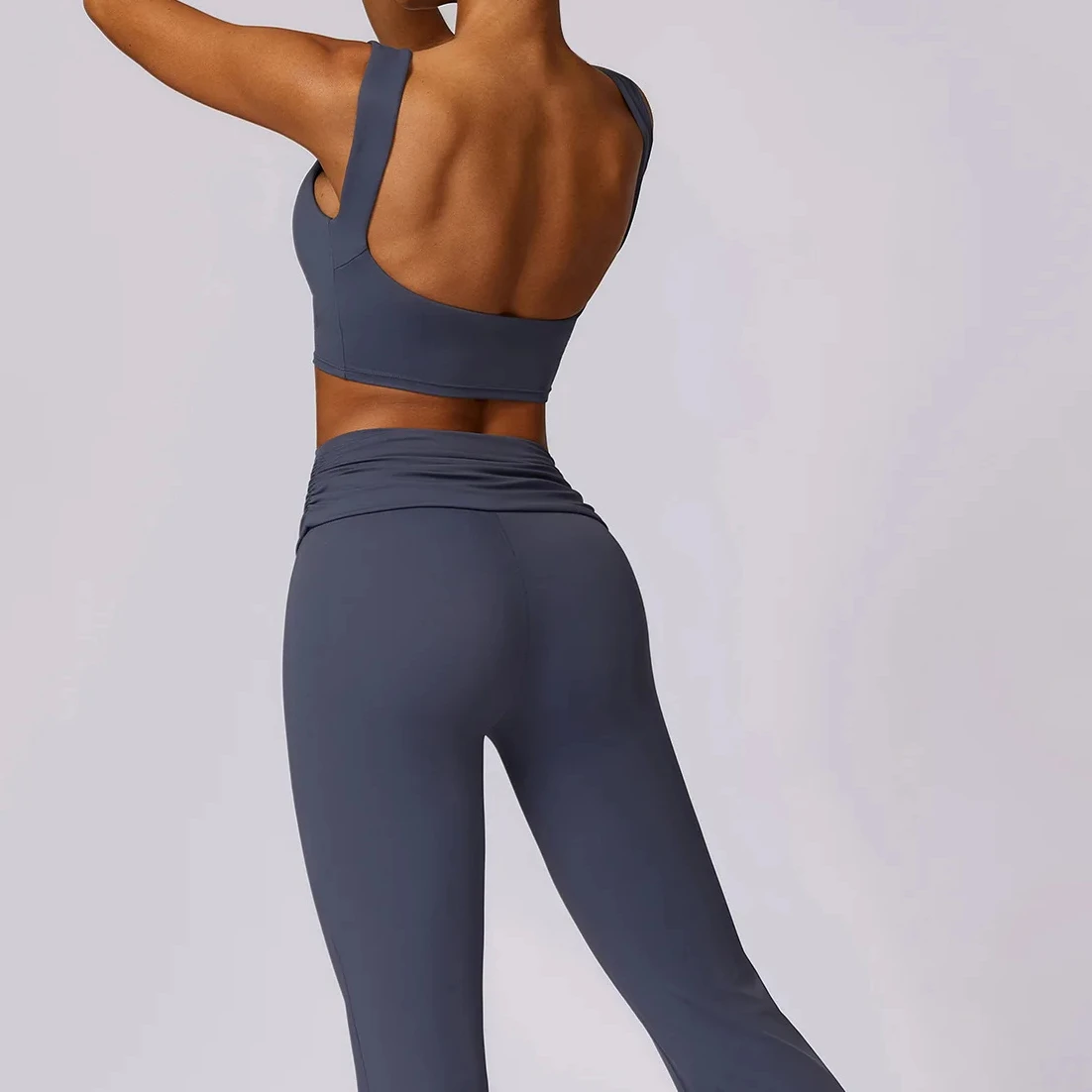 YISHENHON Recyclable Fabric Quick Dry Yoga V Waist Gym Leggings Running Workout Wide Leg Pants Flare Woman Sport Pants