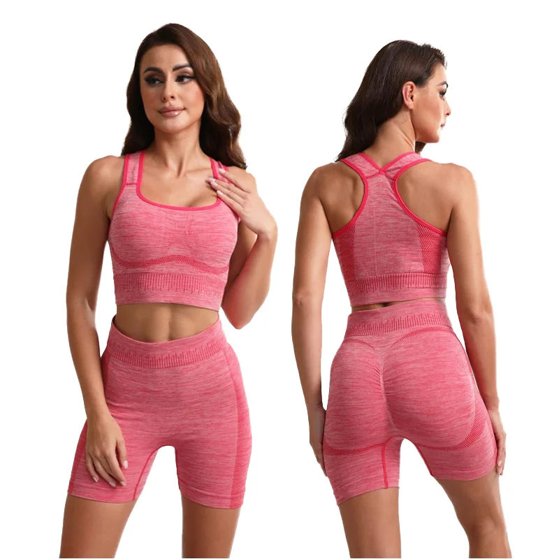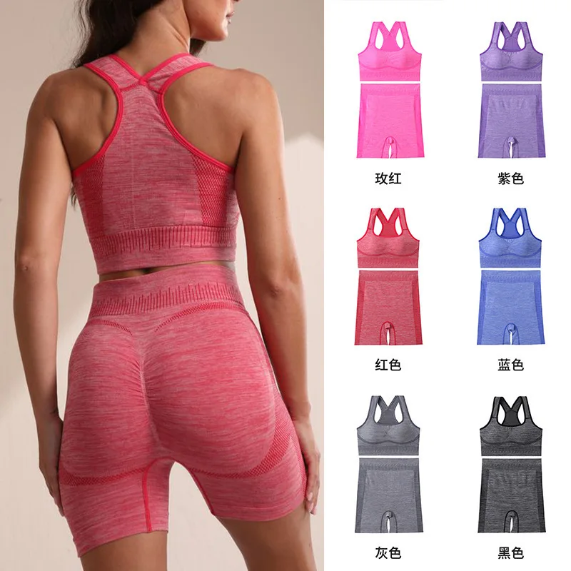 Wholesale Women's High Quality Workout Outfit Plus Size Push-Up Sport Bras Solid Pattern Quick Dry Fitness Breathable Shorts