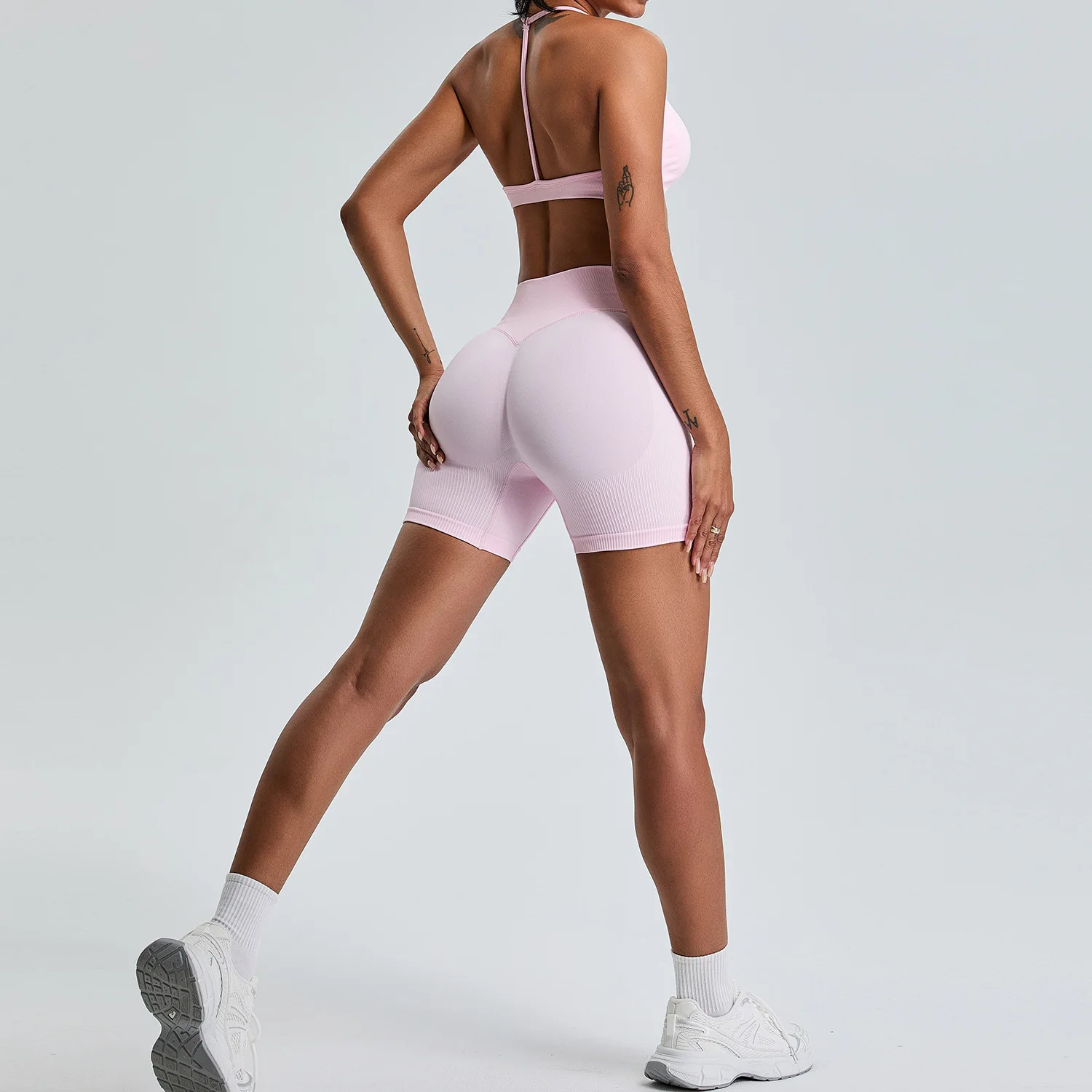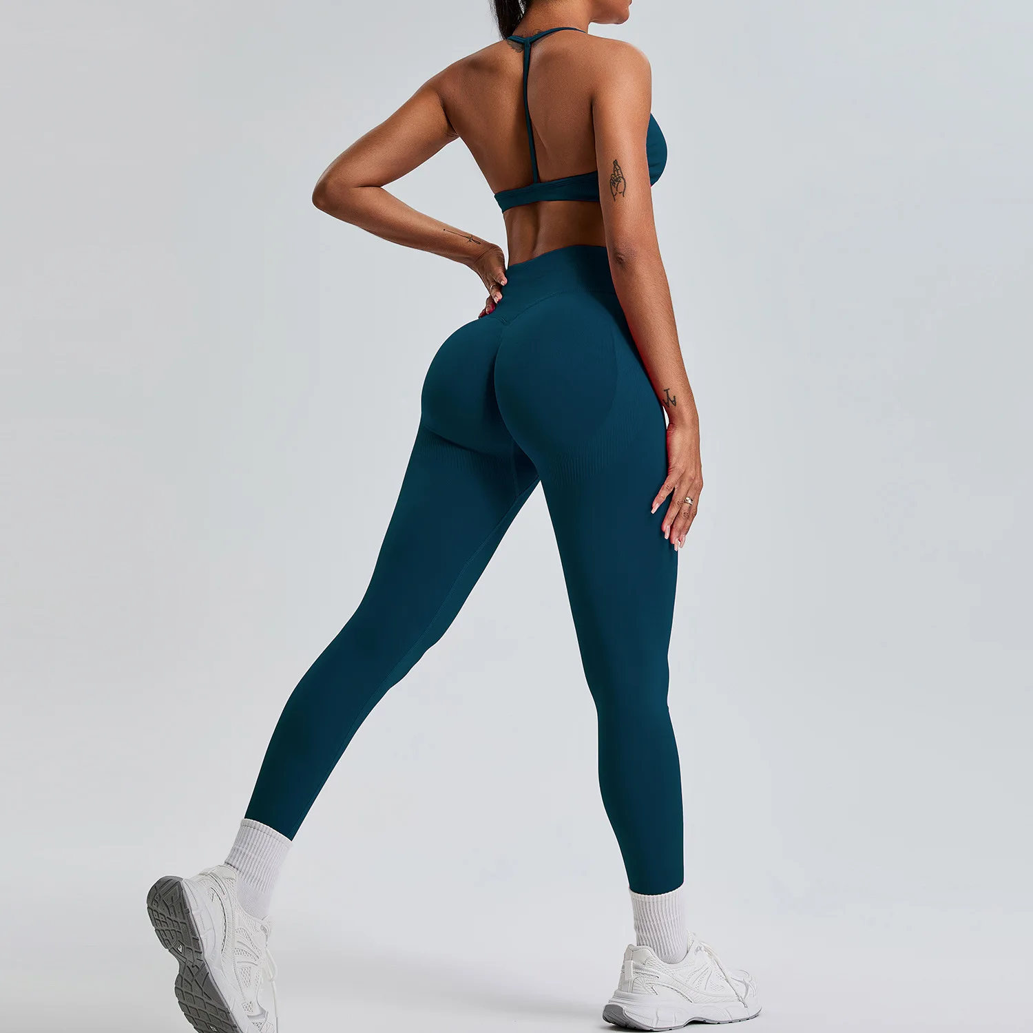 22026 Fall Winter Seamless Yoga Set Women Peach Shaping Butt Lifting High Waist Tummy Control Outdoor Running Fitness Wear
