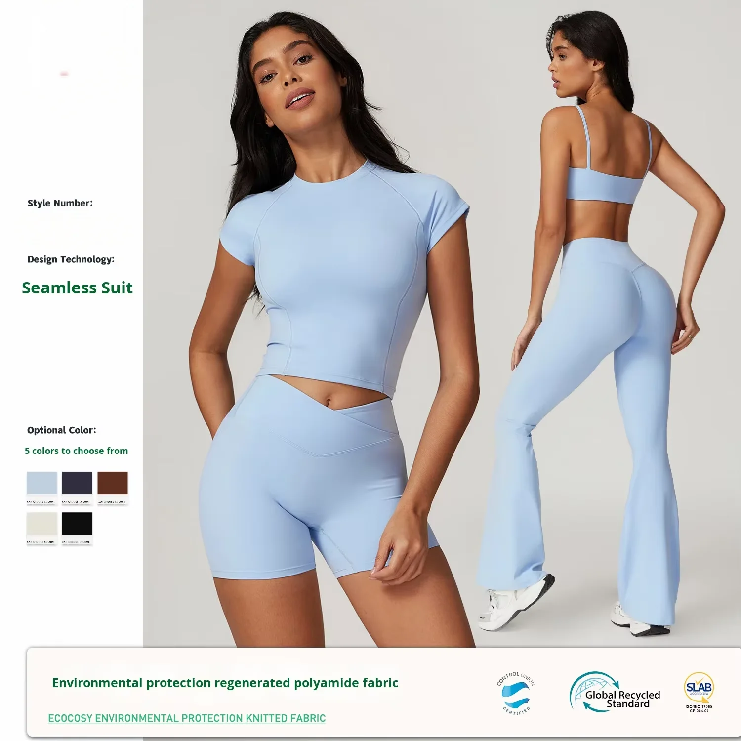 Recycled Fabric Solid Quick Dry Breathable Slim Fit Women Open Back Short Sleeve Workout Running Sports Yoga 2-Piece