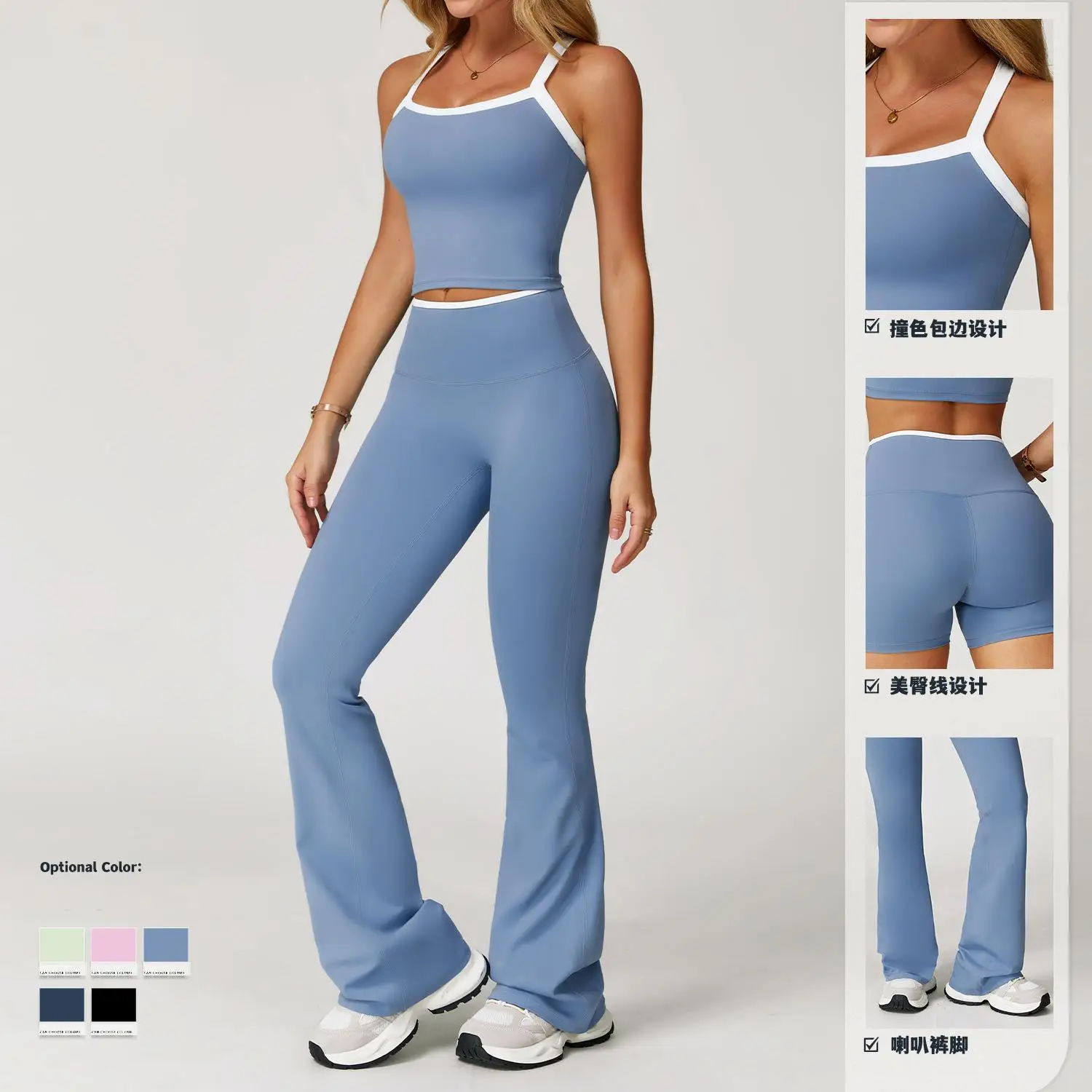 YISHENHON Recyclable Fabric Quick Dry Yoga V Waist Gym Leggings Running Workout Wide Leg Pants Flare Woman Sport Pants