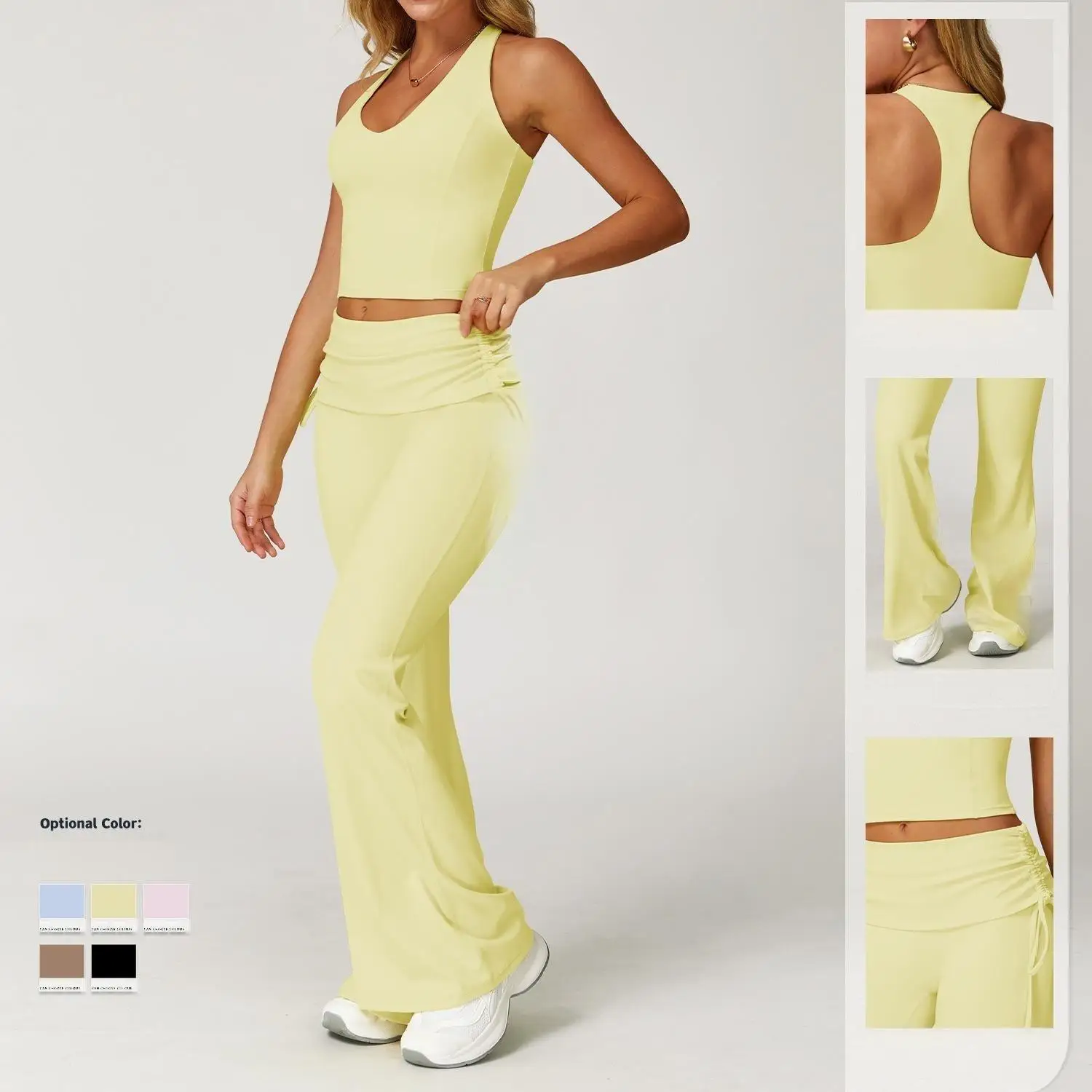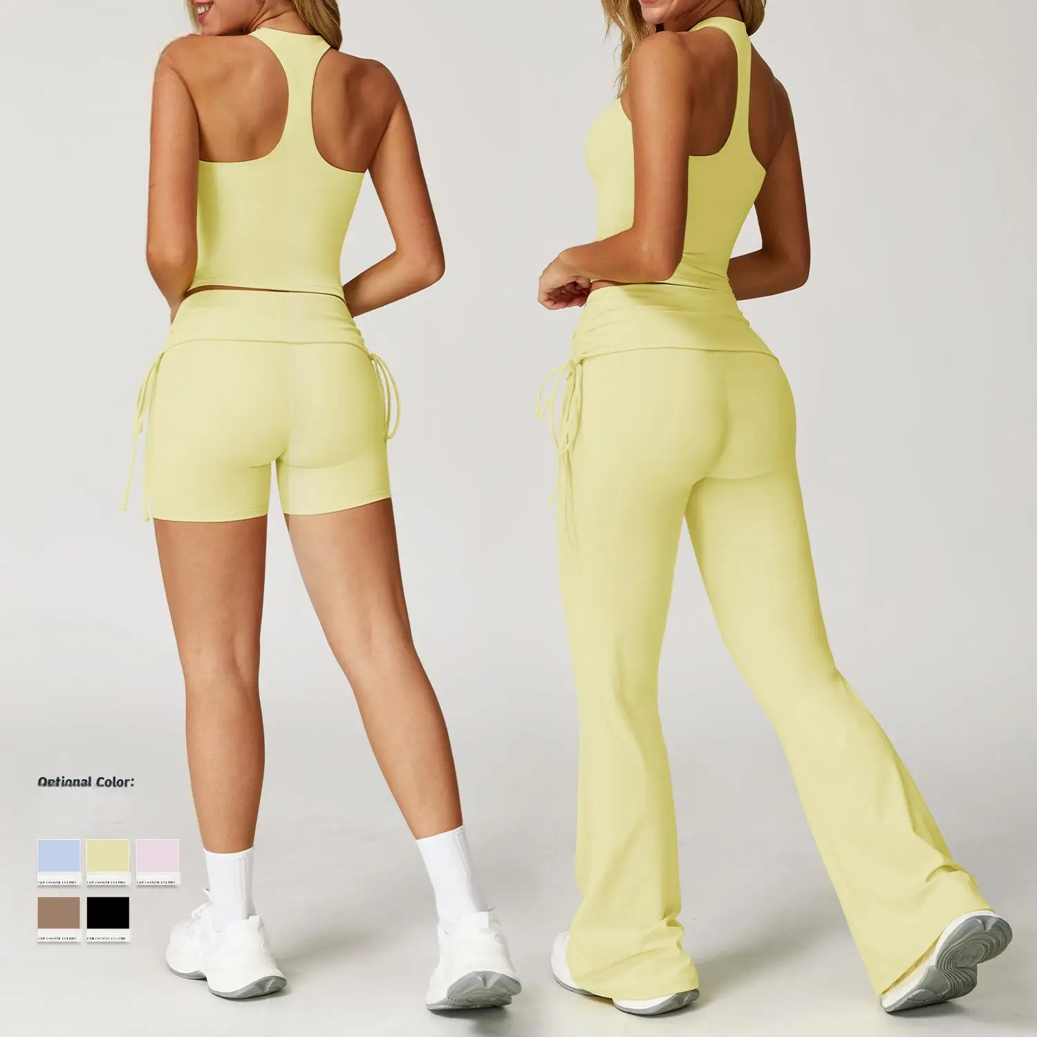 YISHENHON Recyclable Fabric Quick Dry Yoga V Waist Gym Leggings Running Workout Wide Leg Pants Flare Woman Sport Pants