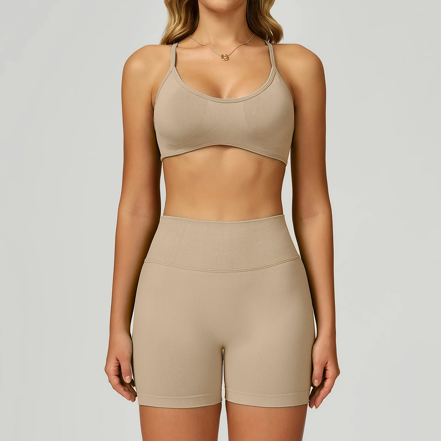 Custom Logo Seamless Workout Gym Fitness Set Women Bra and Shorts Active Wear Solid Pattern Activewear Sports Clothing Yoga Sets