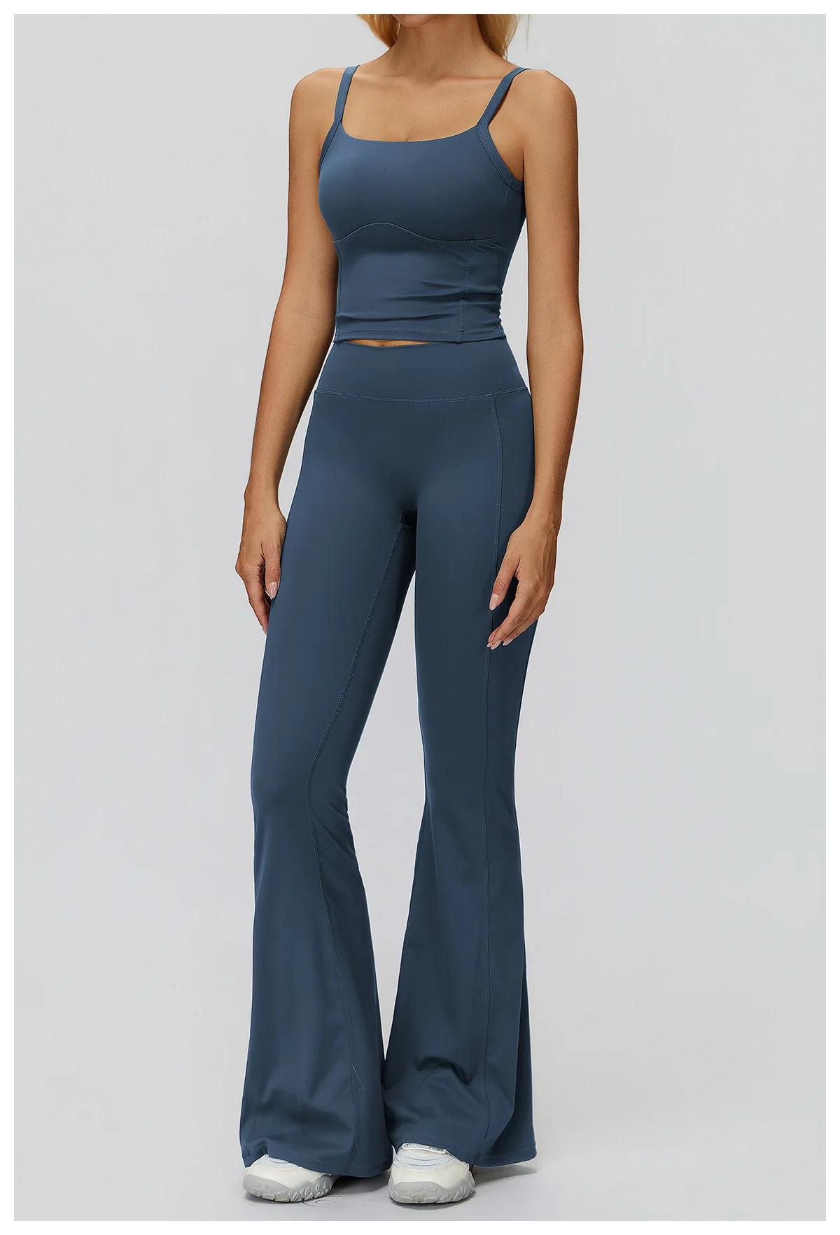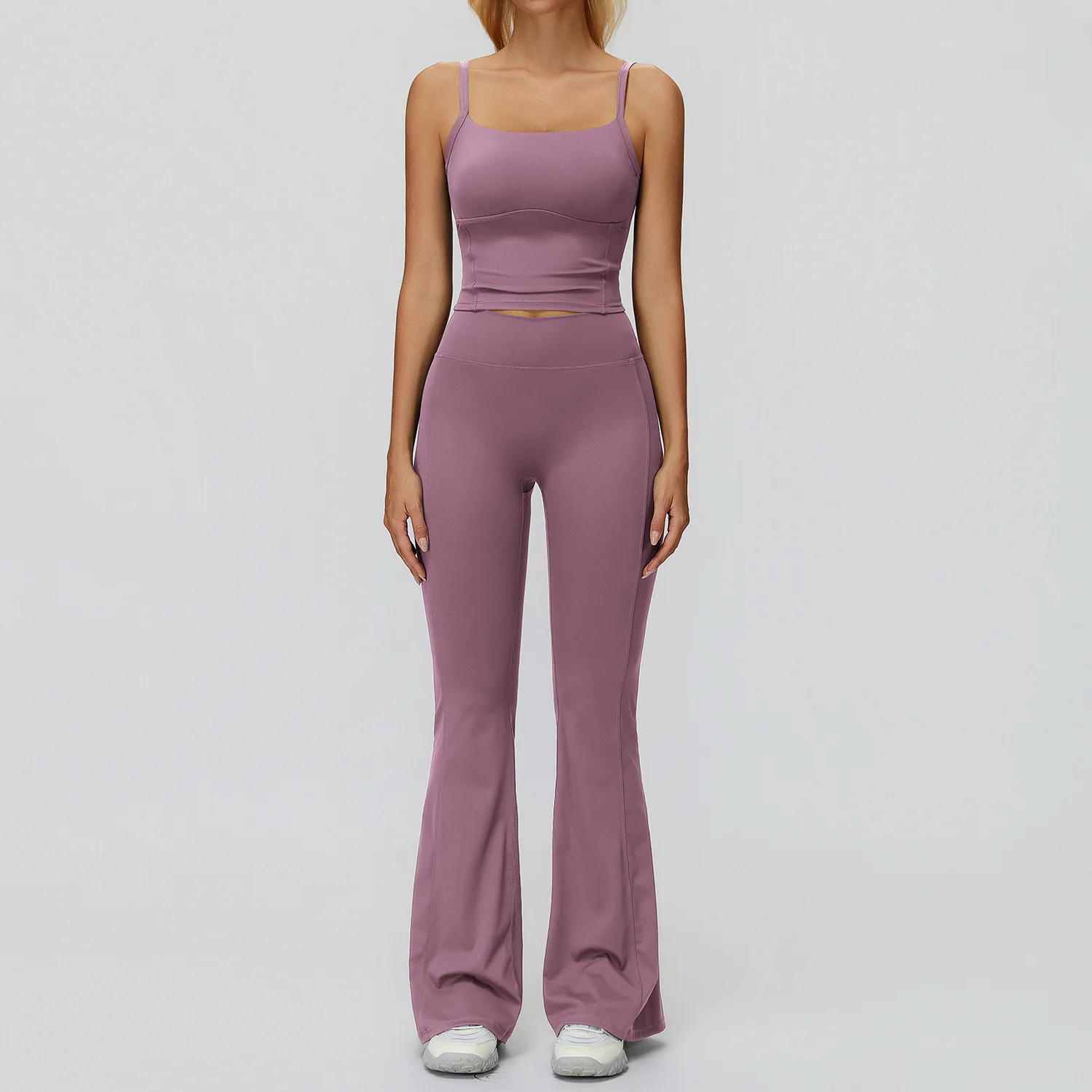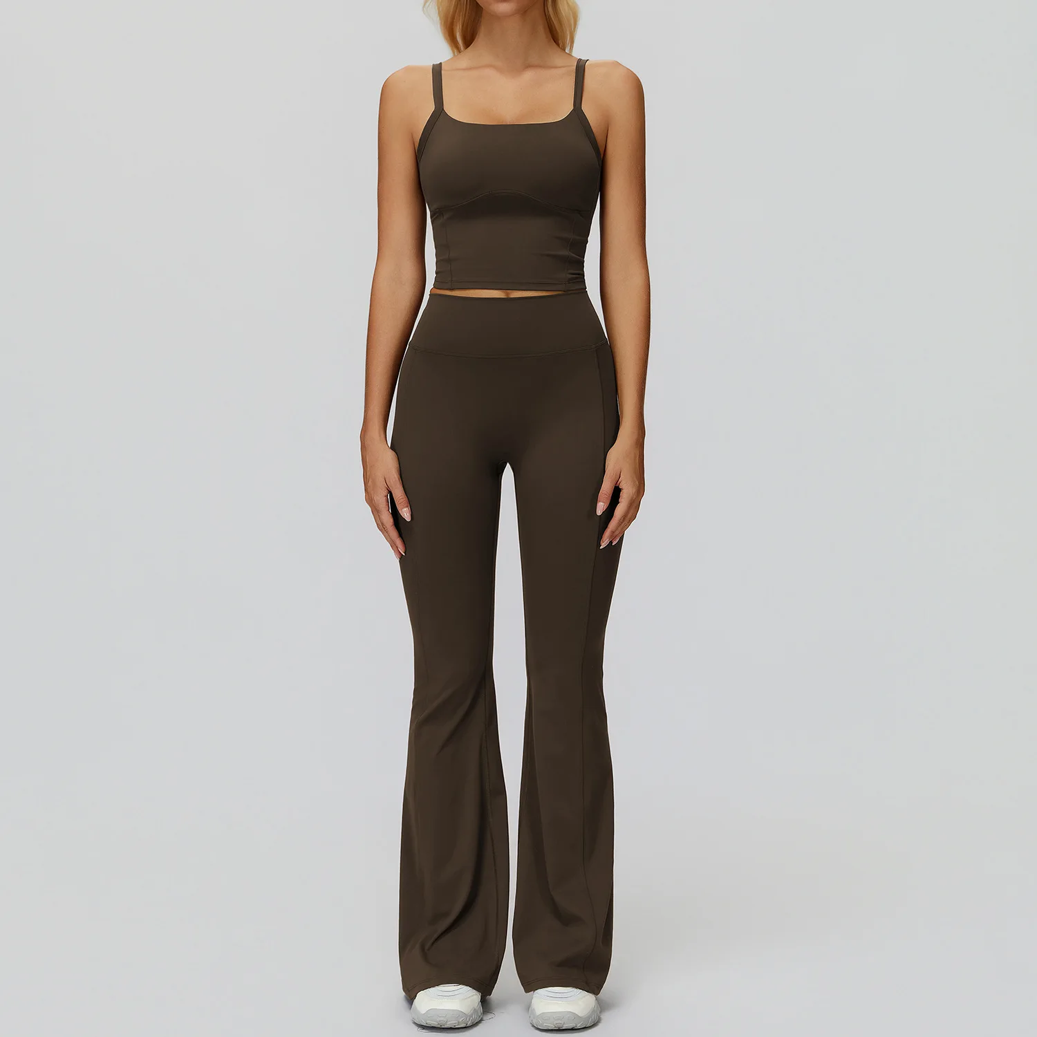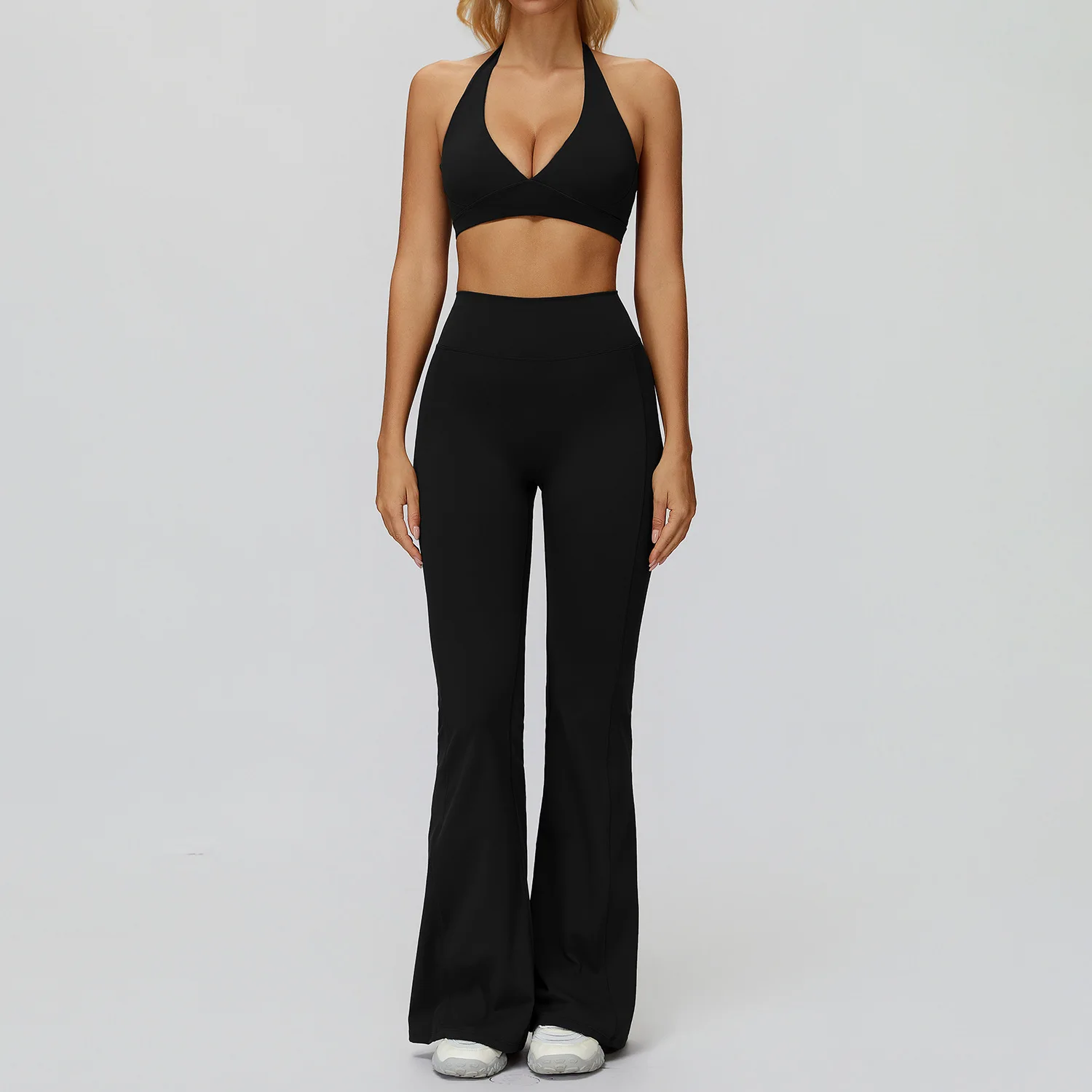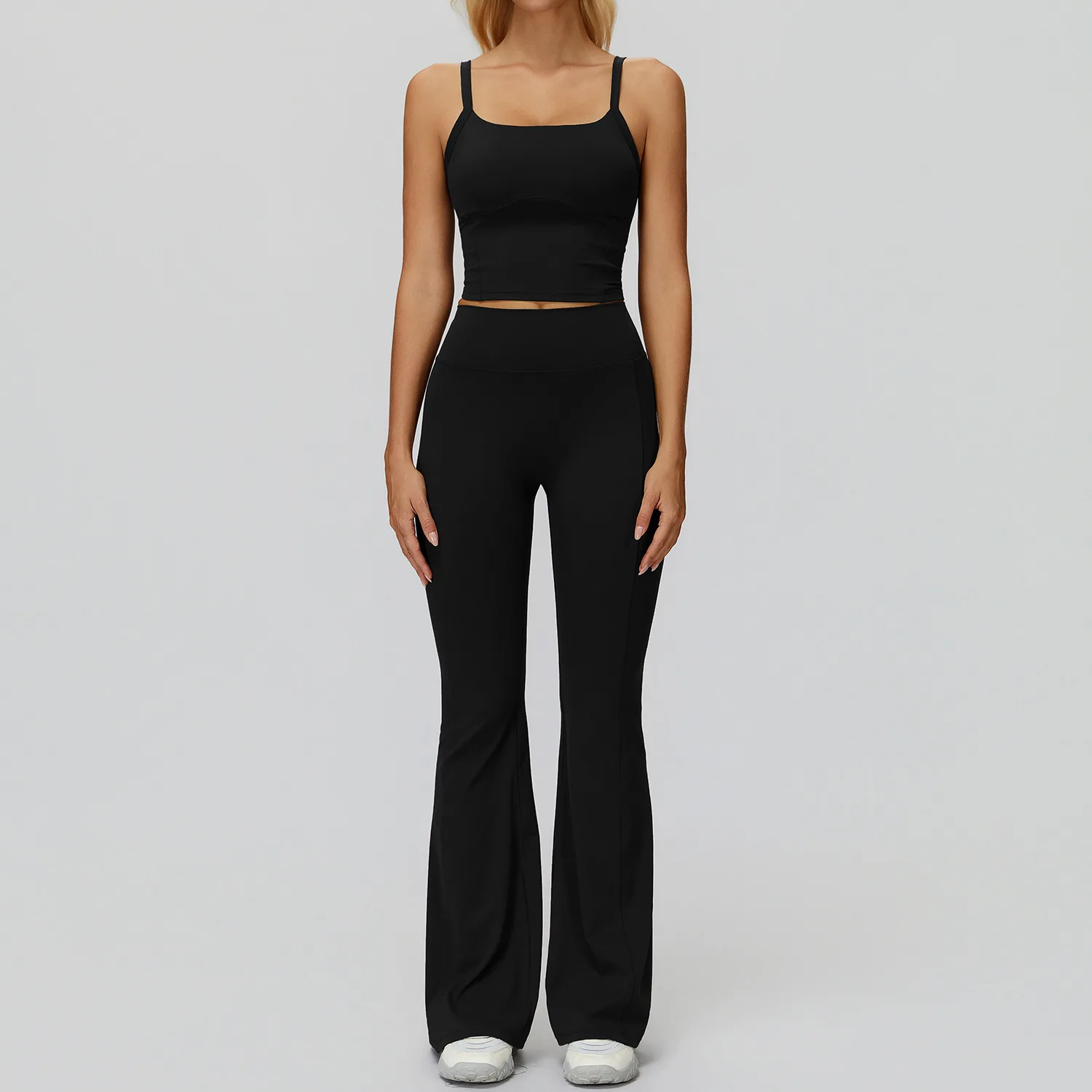 Custom logo Breathable Brushed Flared High Waist Scrunch Flare Pants Crop Top Quick Dry Gym Running Fitness Outfit Yoga Set