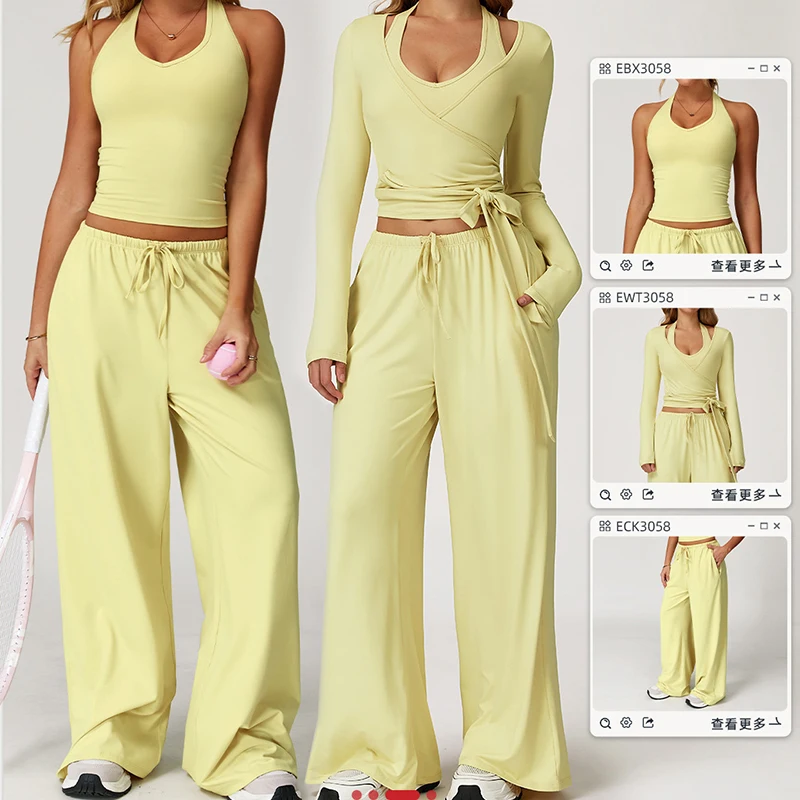 YISHENHON Recyclable Fabric Quick Dry Yoga V Waist Gym Leggings Running Workout Wide Leg Pants Flare Woman Sport Pants