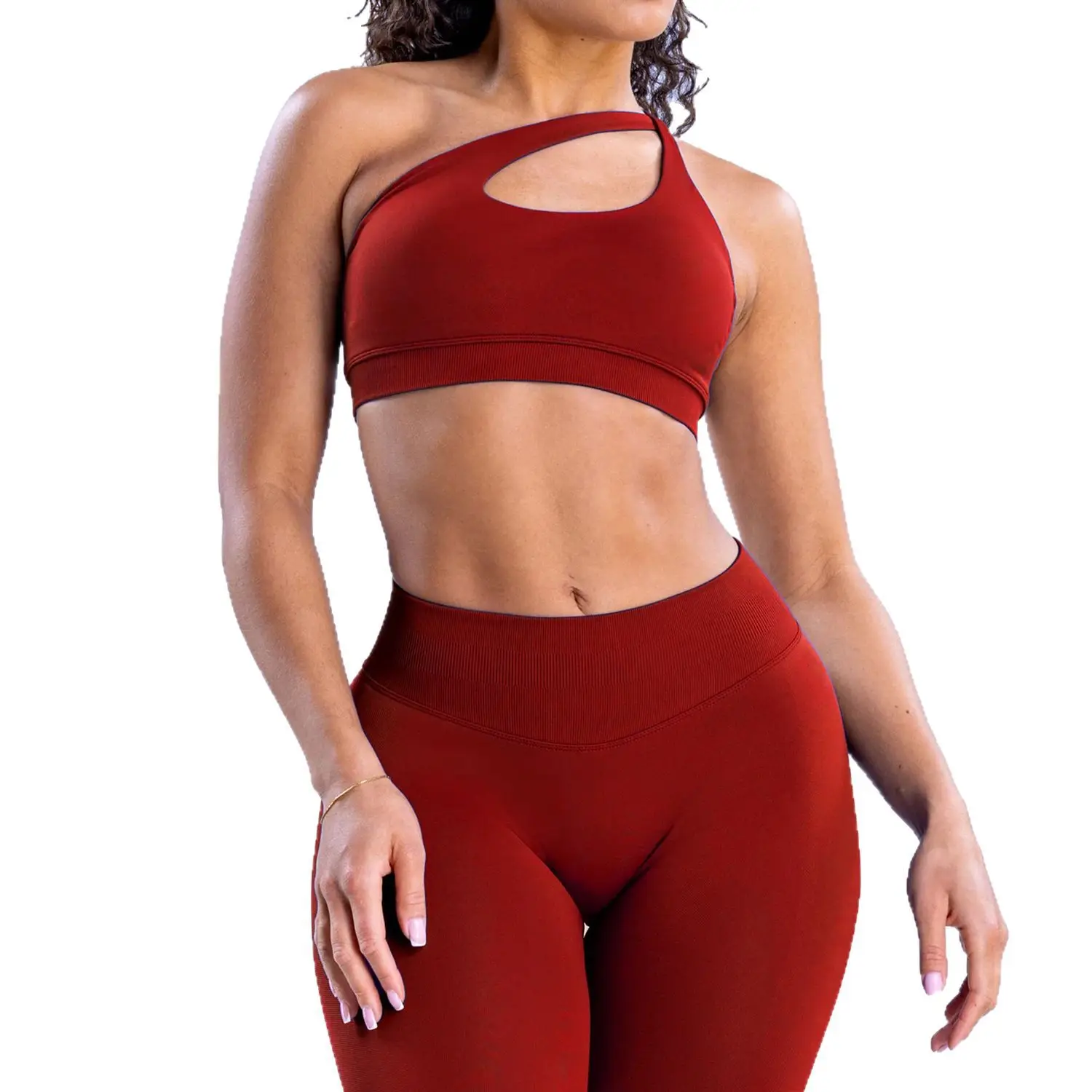 Custom Logo Lightweight Breathable Seamless High Support Sports Bra Legging Ribbed High Waisted Elastic Gym Outdoor Colorfast