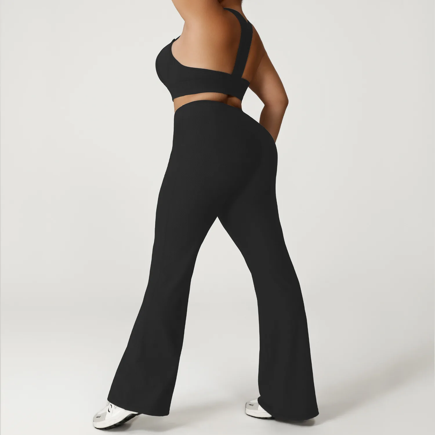 YISHENHON Recyclable Fabric Quick Dry Yoga V Waist Gym Leggings Running Workout Wide Leg Pants Flare Woman Sport Pants