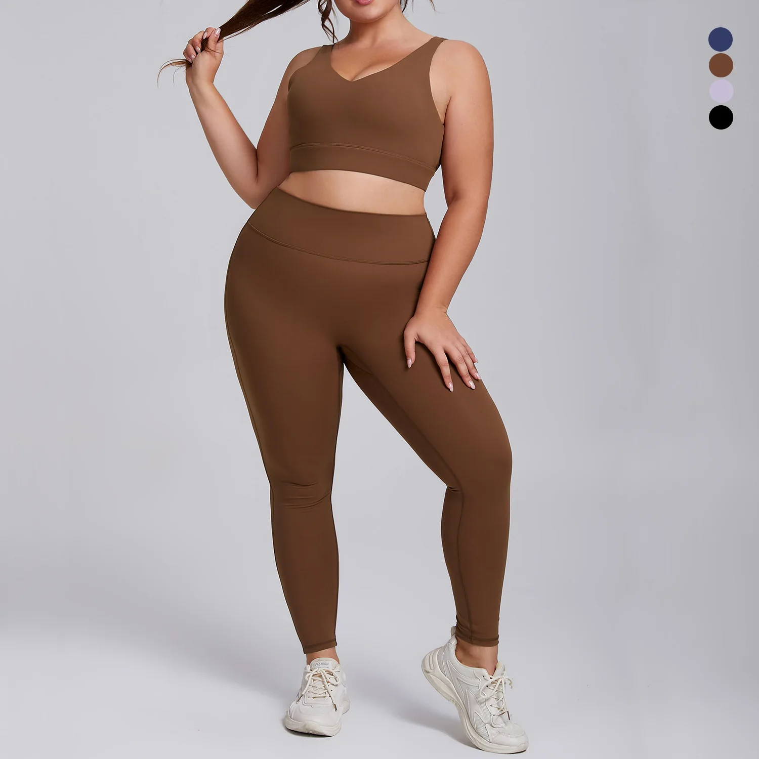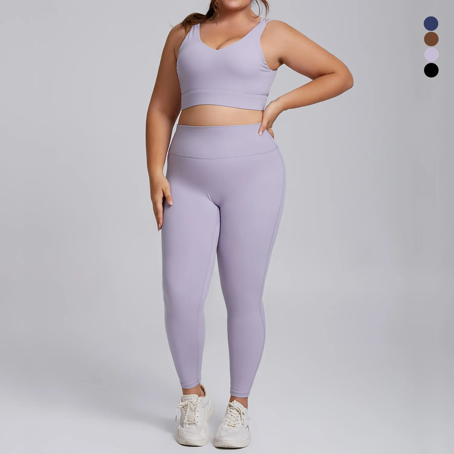 High Waisted Plus Size Solid Tummy Control Durable Stitching Yoga Workout 2-Piece Set Spandex/Nylon