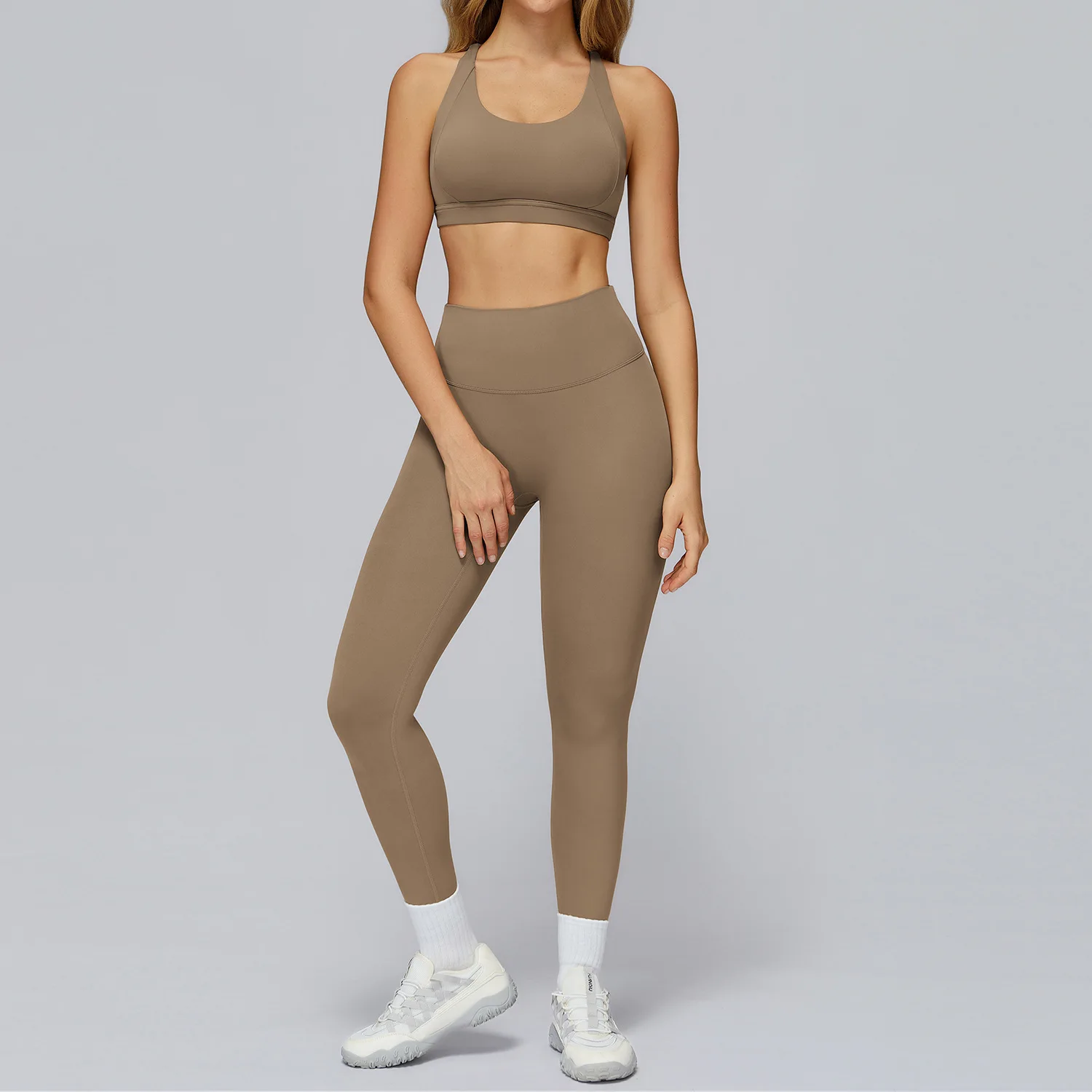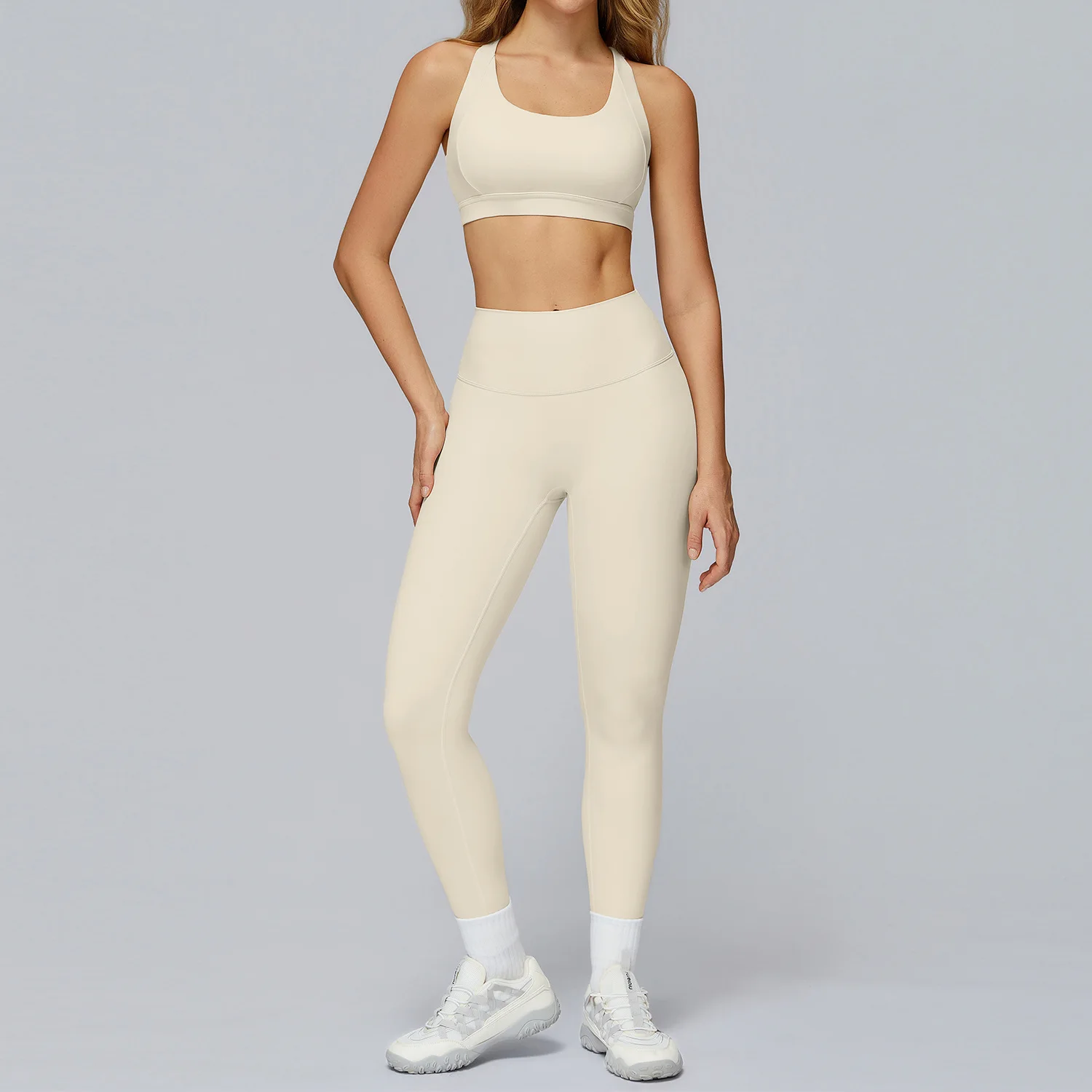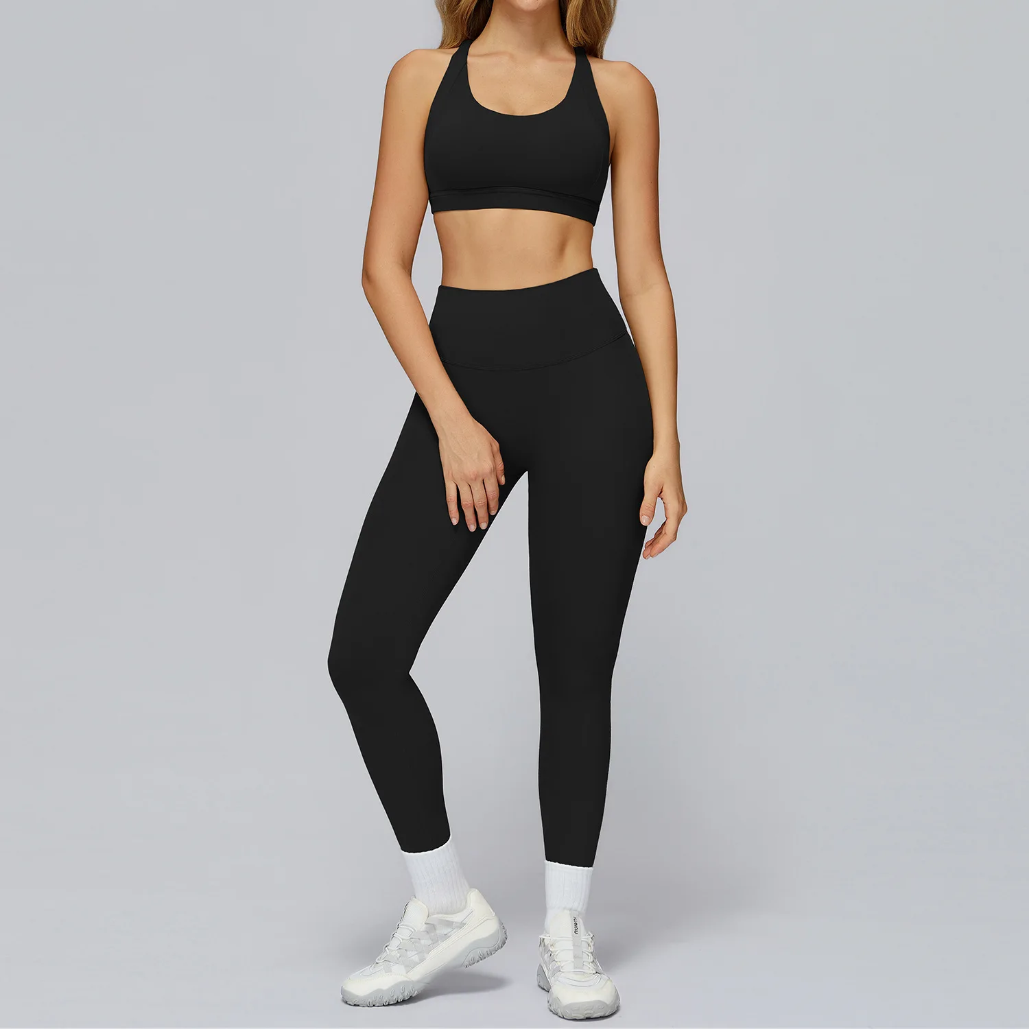 Women's Fitness Suit Hollow Back Bra Long Leggings 2-piece Breathable and Comfortable Set Running Fitness Yoga Set