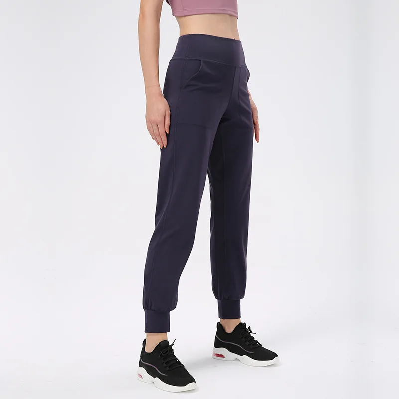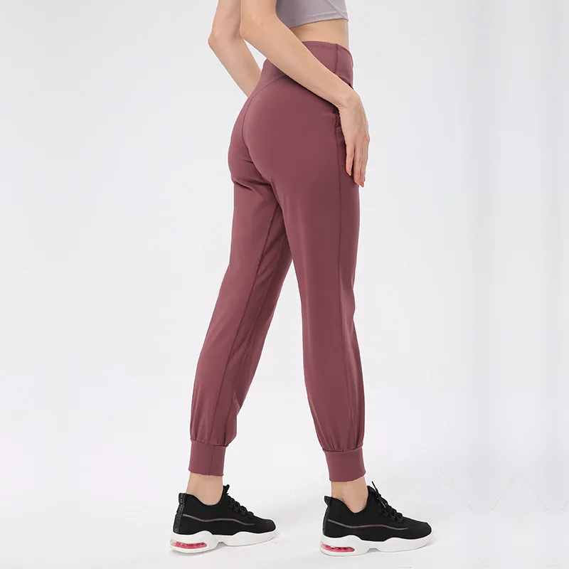 High Waisted Solid Elastic Waist Sports Ankle Pants Four-Way Stretch Breathable Eco-Friendly Fitness Running Yoga Pants