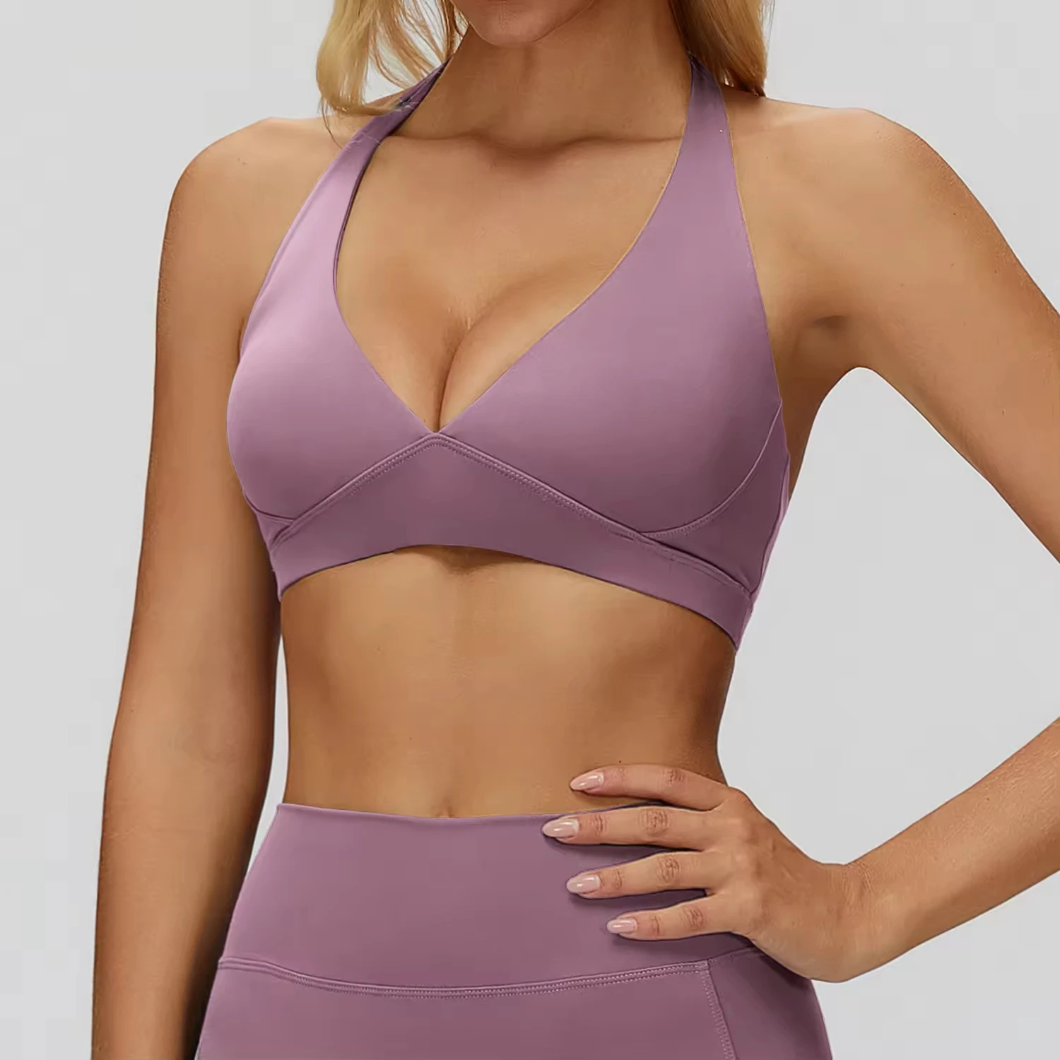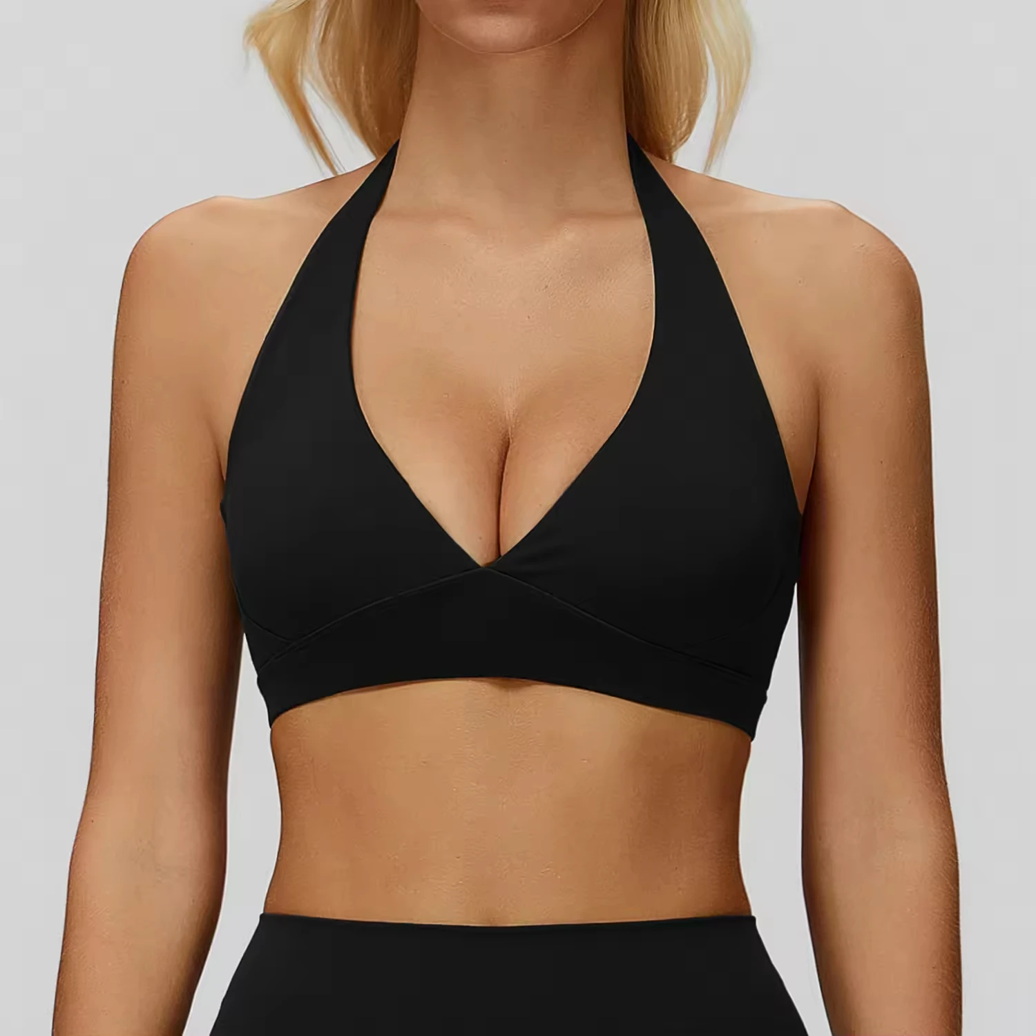 Women's Brushed Fabric Hanging Neck Design Gym Sports Bra Hollow Back Detachable Chest Cushion Workout Clothes Fitness Yoga Bra