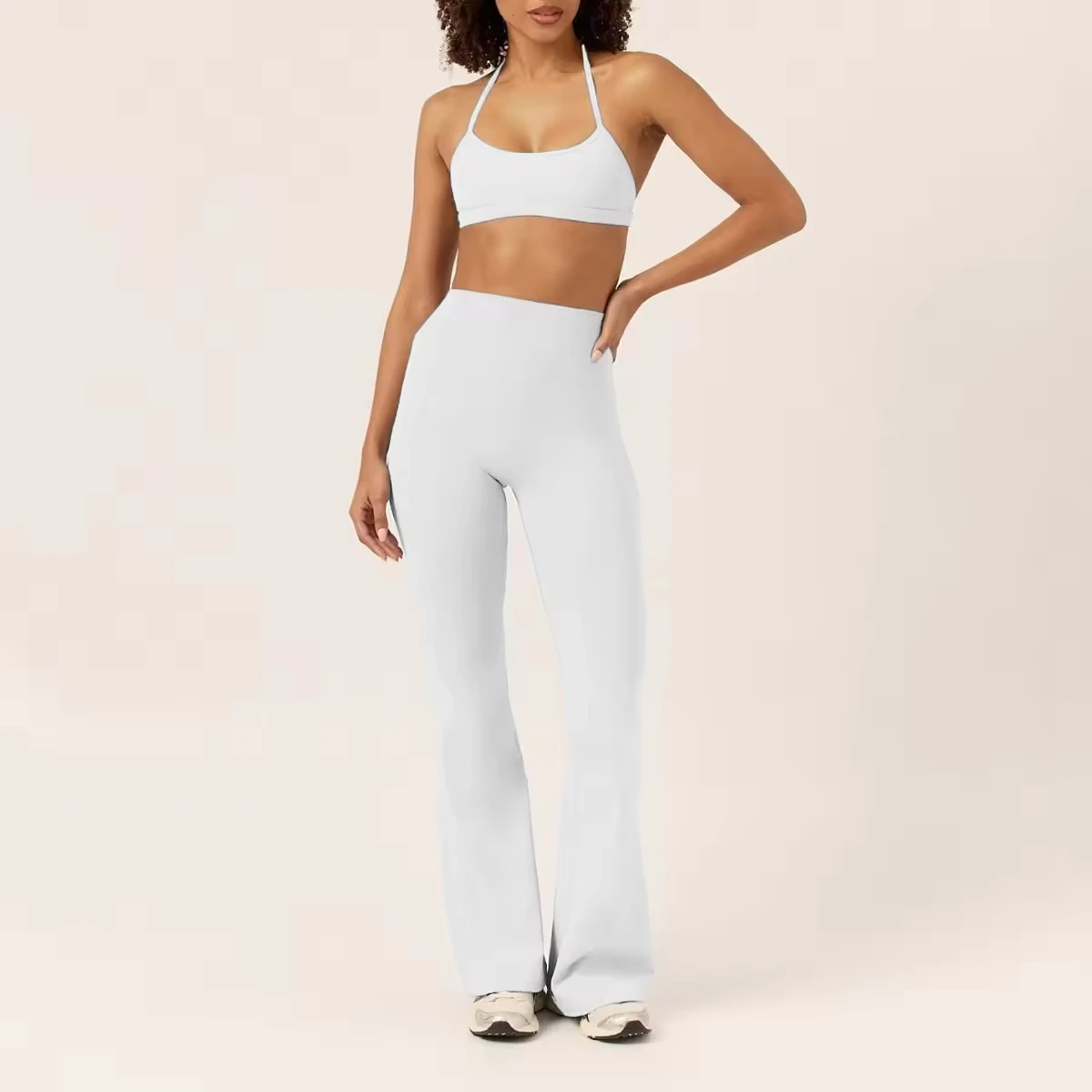 YISHENHON Recyclable Fabric Quick Dry Yoga V Waist Gym Leggings Running Workout Wide Leg Pants Flare Woman Sport Pants