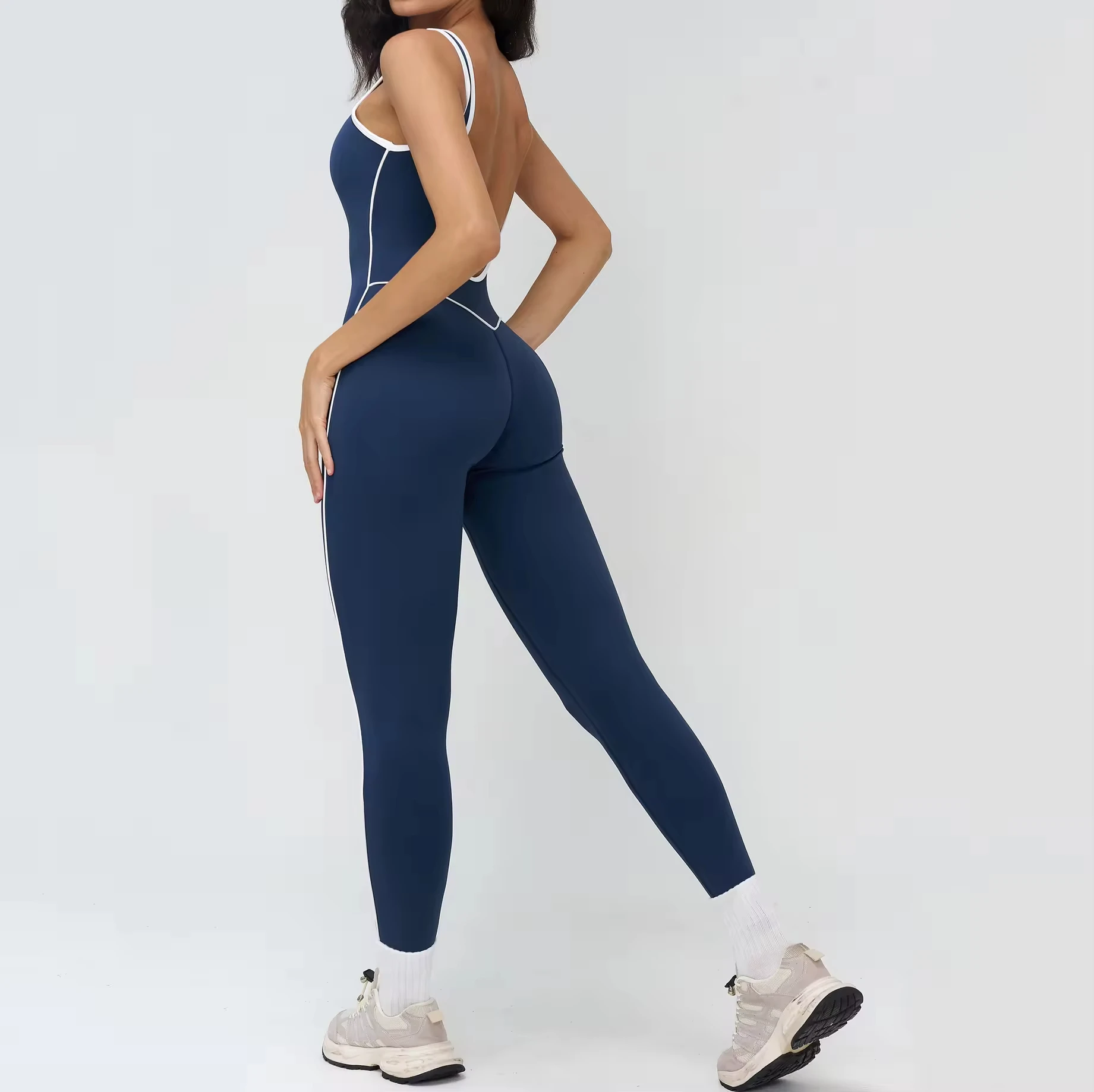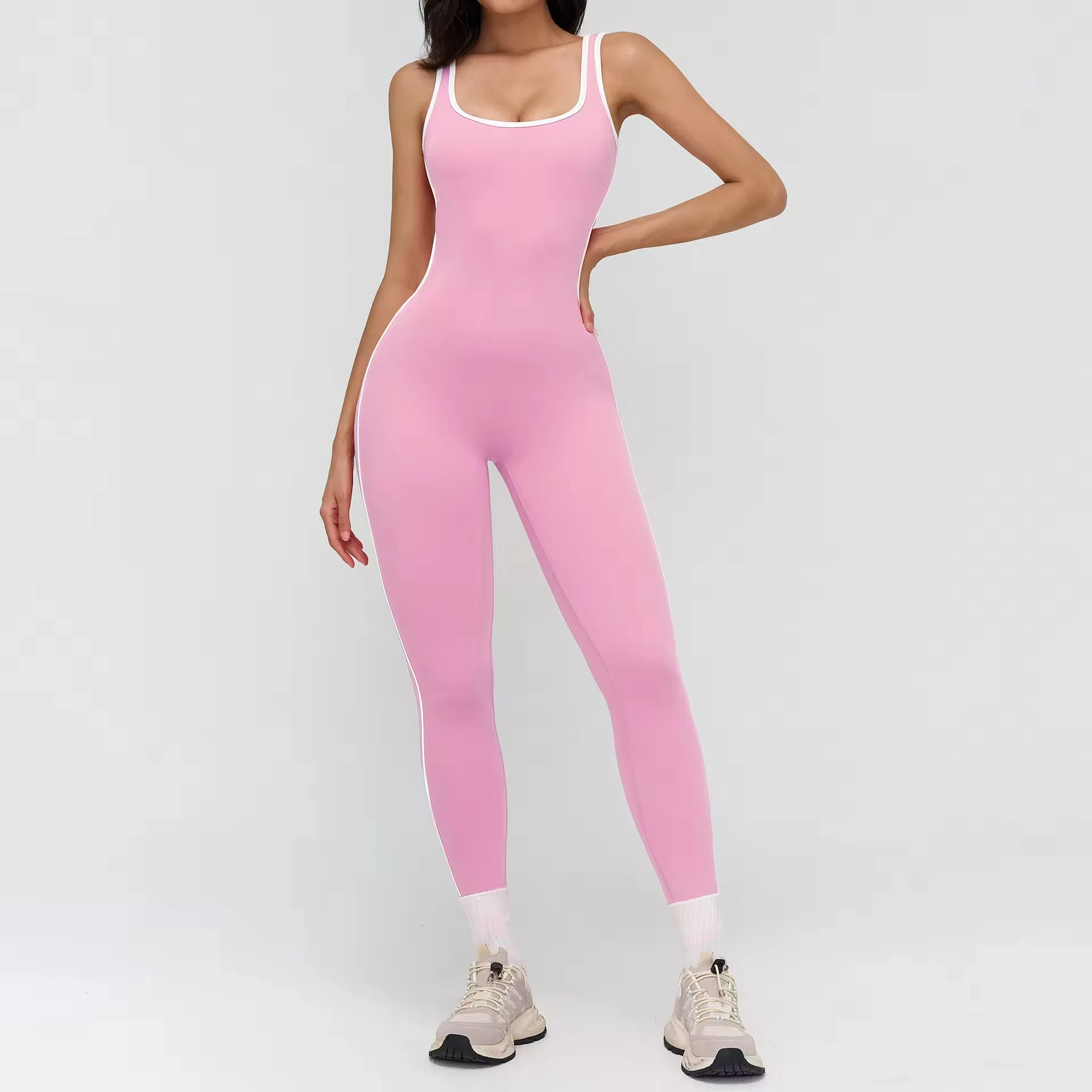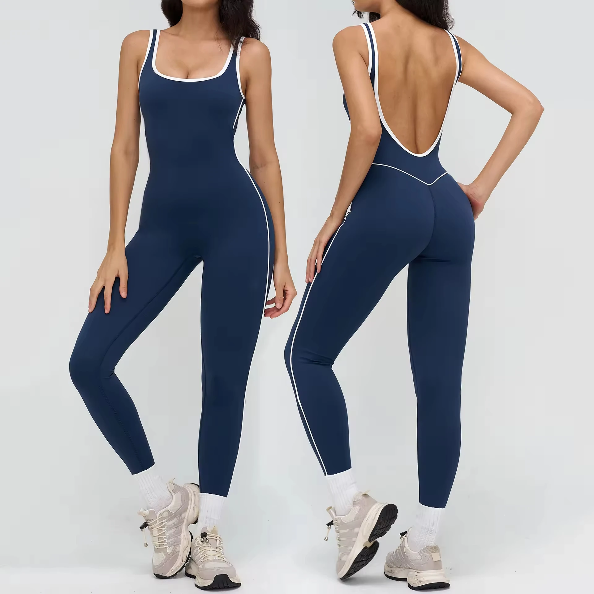 Seamless Stand Neck Solid Nylon/Spandex Sports Bodysuits Four-Way Stretch Yoga Bodysuit Women's Fitness Jumpsuit