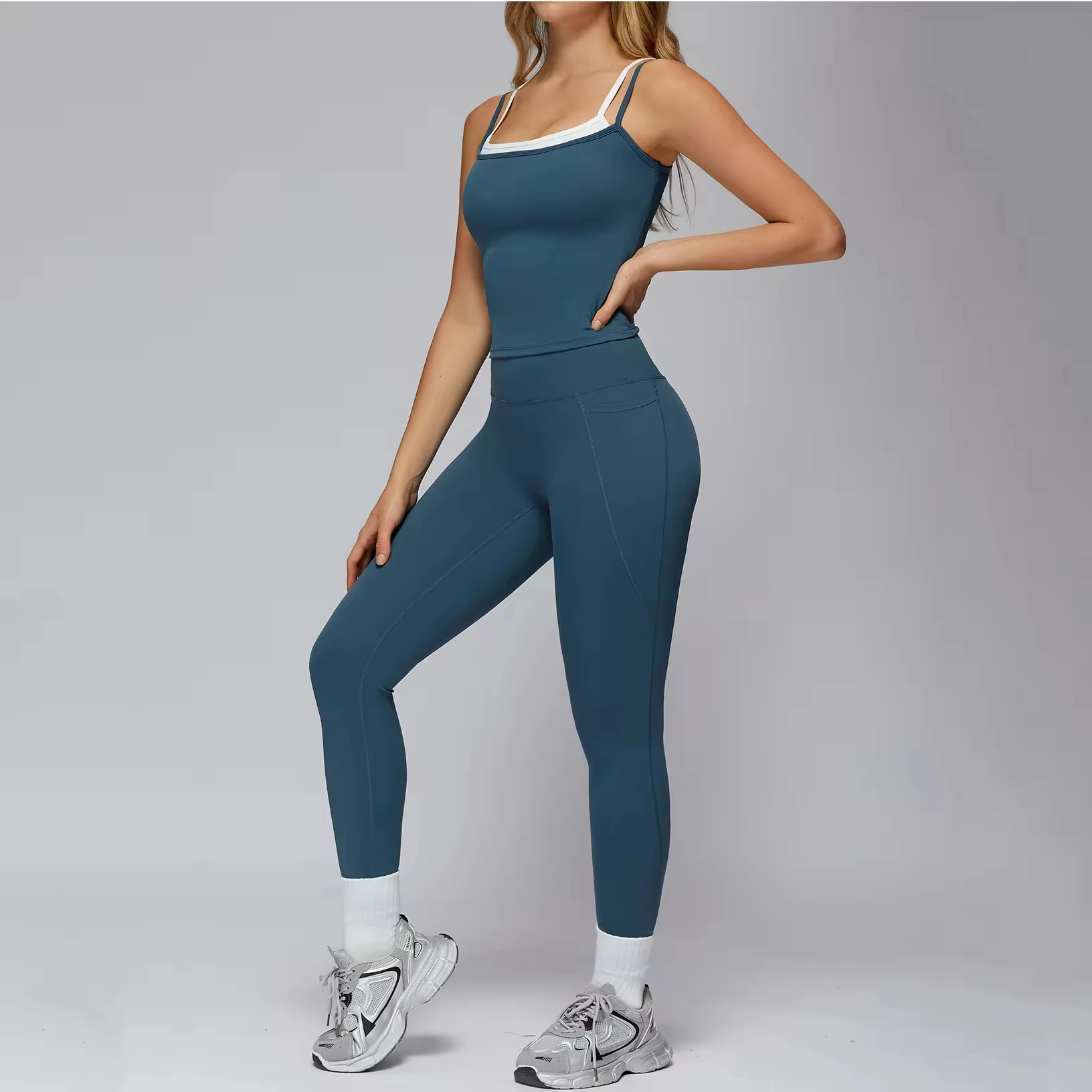 Women's Fashion Two Piece Workout Gym Wear High Waist Workout Sports Yoga Pants Set