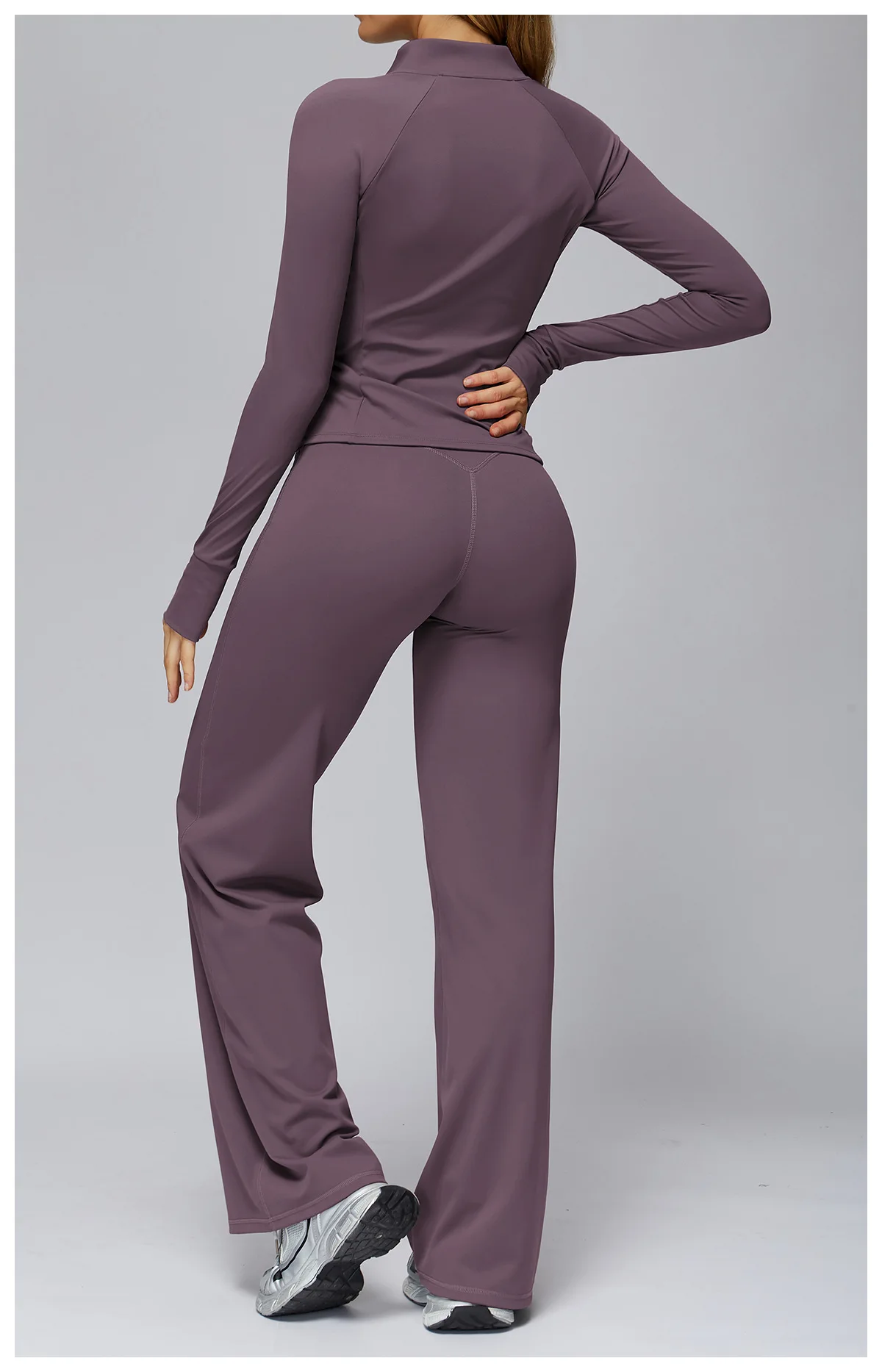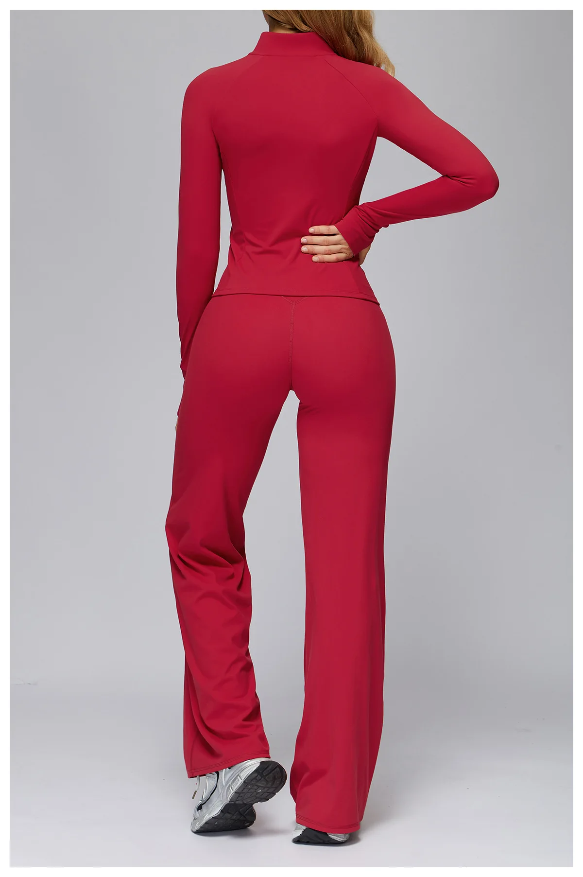 Hot Sale Womens Long Sleeve Gym Training Long Sleeve Zipper Jacket High Waist Flared Leggings Sets Fitness Yoga Sets
