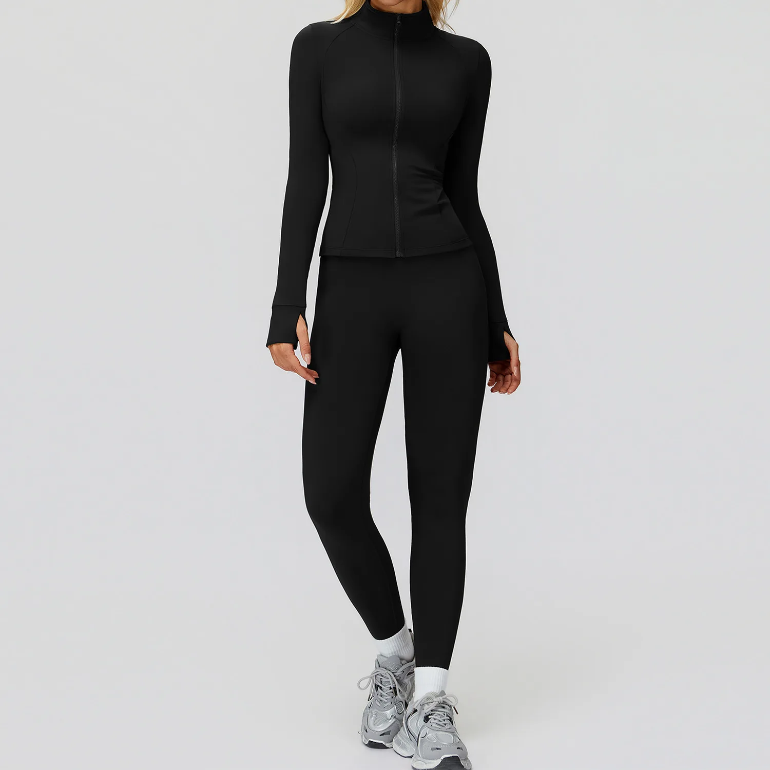 2026 Winter Outdoor Standing Collar Slim Long Sleeve Yoga Zipper Jacket Set Training Women Compression Yoga Set