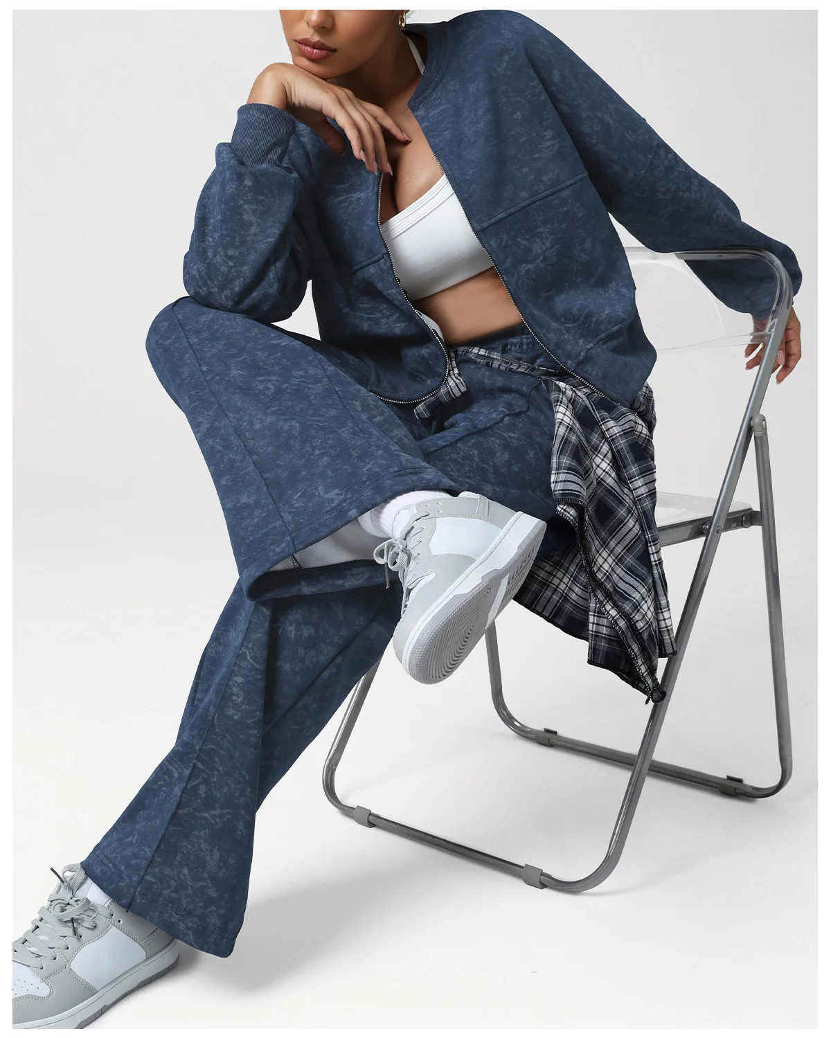 Custom logo New Arrival Printing Long Sleeve Cropped Loose Yoga Two Piece Set Yoga Set