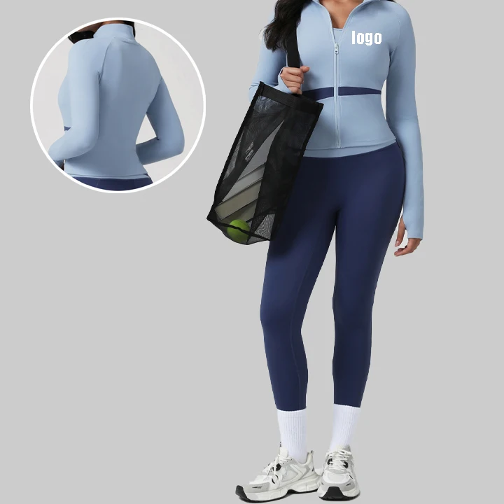 Custom Quick Dry Stand Color Block Slimming Training Sport Jacket Long Sleeve Gym Yoga Jacket