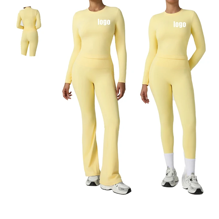 Custom logo Naked Feeling Workout Flared Leggings Exercise Push up Yoga Fitness Set Yoga Set