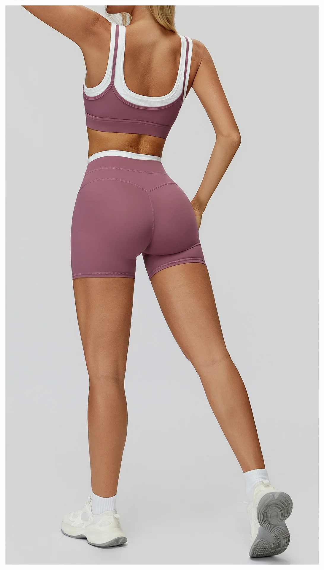 2026 New Arrival Ribbed Contrast Color Active Wear Yoga Sets U Back Sport Bra Outdoor Workout 2 Piece Yoga Sets