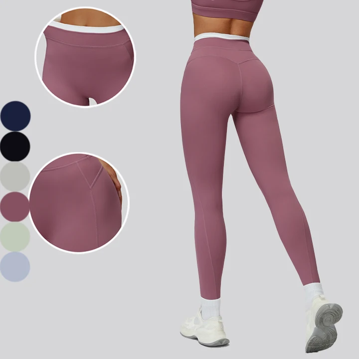 Customized Color Blocking Side Line Ribbed Design High Waist Yoga Leggings Butt Lifting Leggings Workout Gym Yoga Leggings