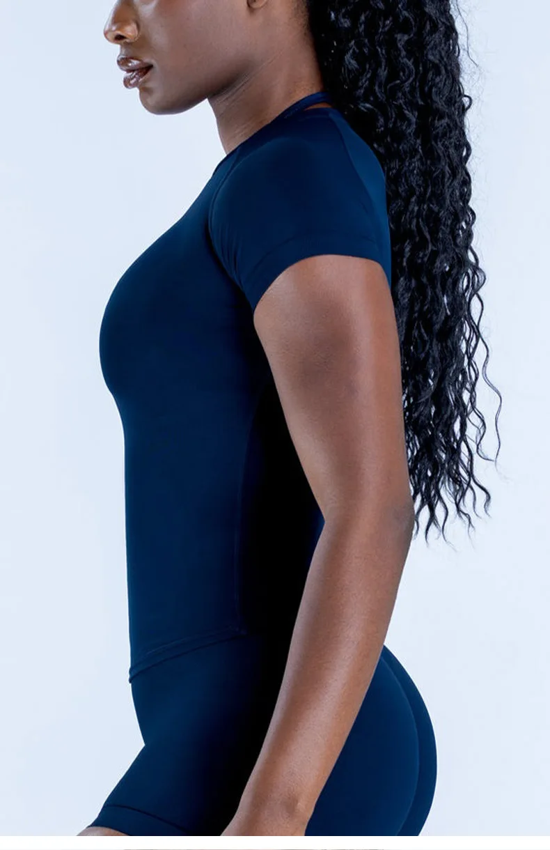 YISHENHON 2026 New Design Quick Drying Casual Tight Short Sleeve Yoga Wear Women High Intensity Running Sports Fitness T-shirt