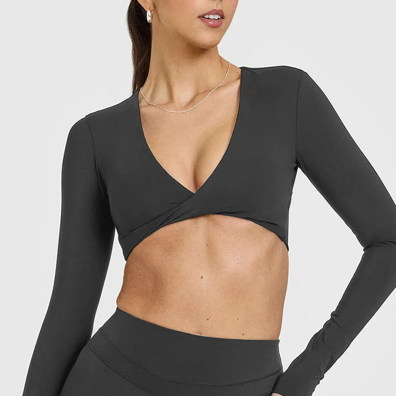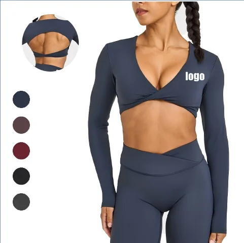 New Arrival Fitness Twist Front Sports Activewear Training Shirt Slim Fit Yoga Shirts