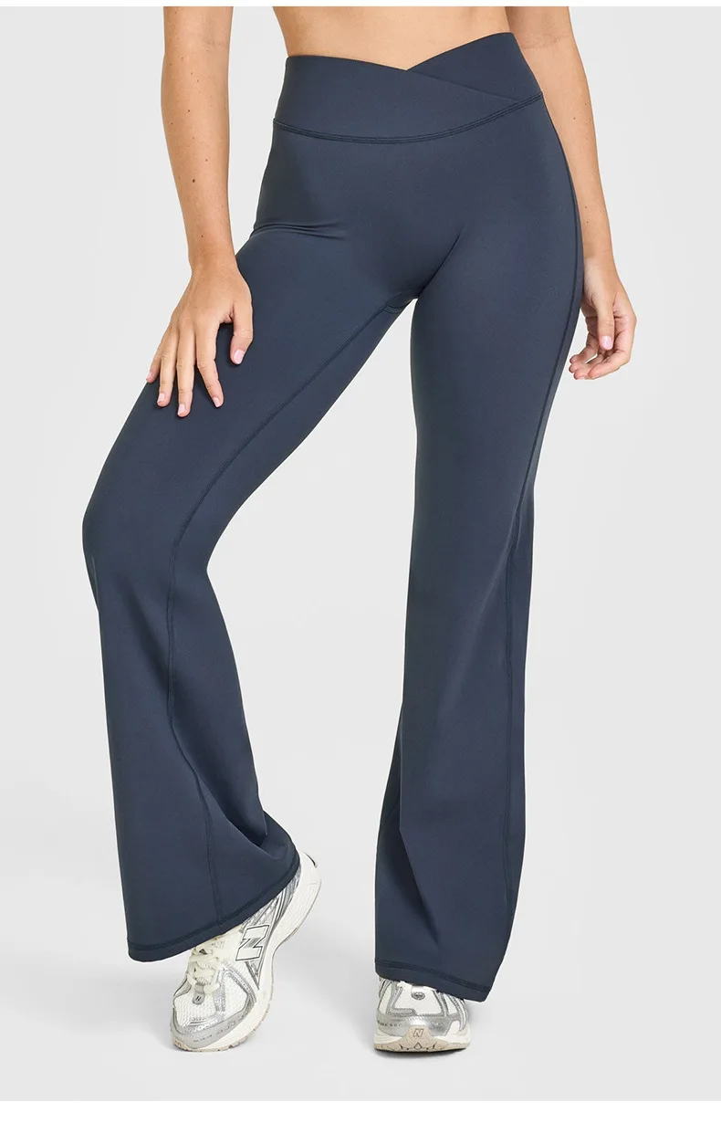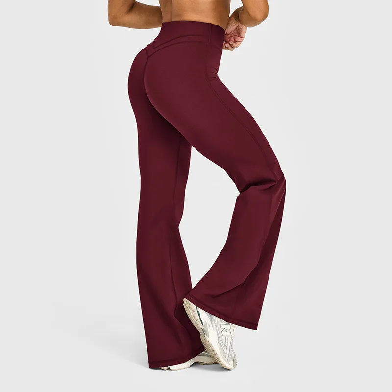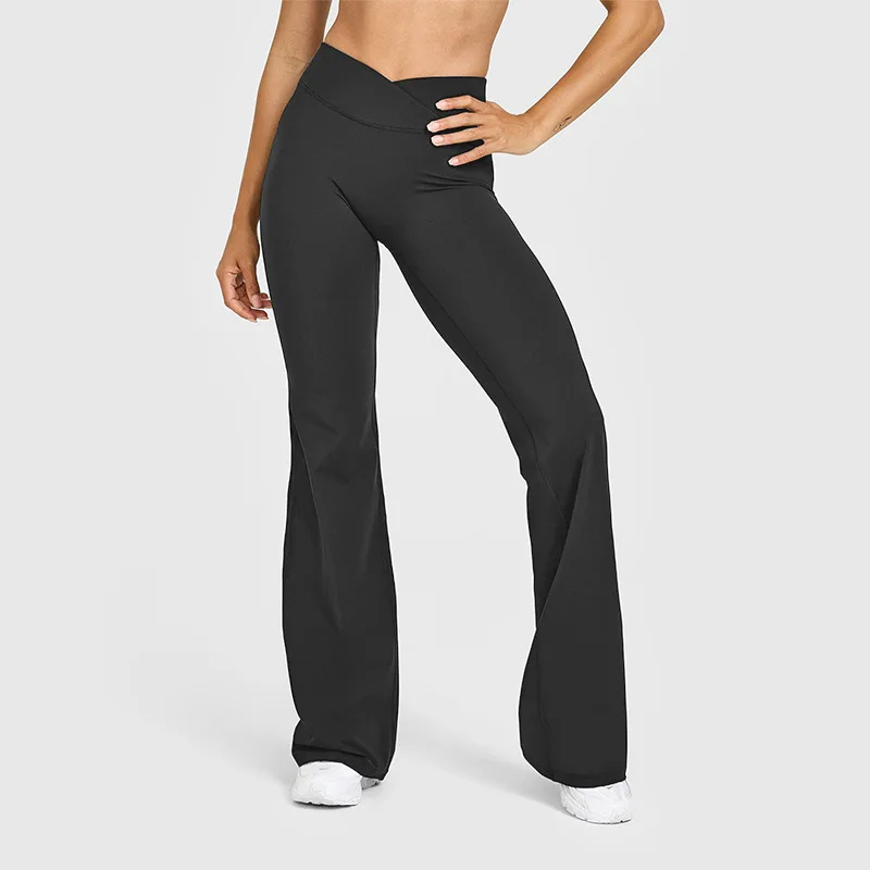 YISHENHON Recyclable Fabric Quick Dry Yoga V Waist Gym Leggings Running Workout Wide Leg Pants Flare Woman Sport Pants