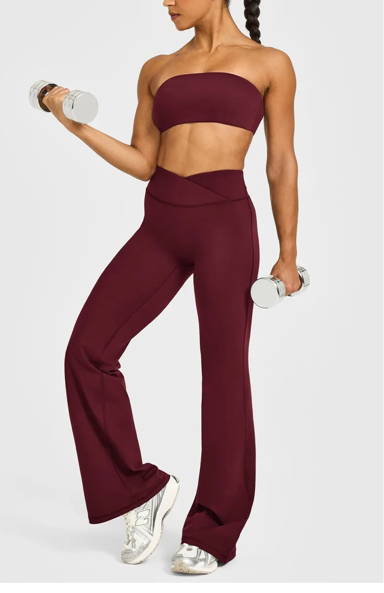 YISHENHON Recyclable Fabric Quick Dry Yoga V Waist Gym Leggings Running Workout Wide Leg Pants Flare Woman Sport Pants