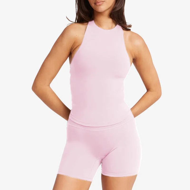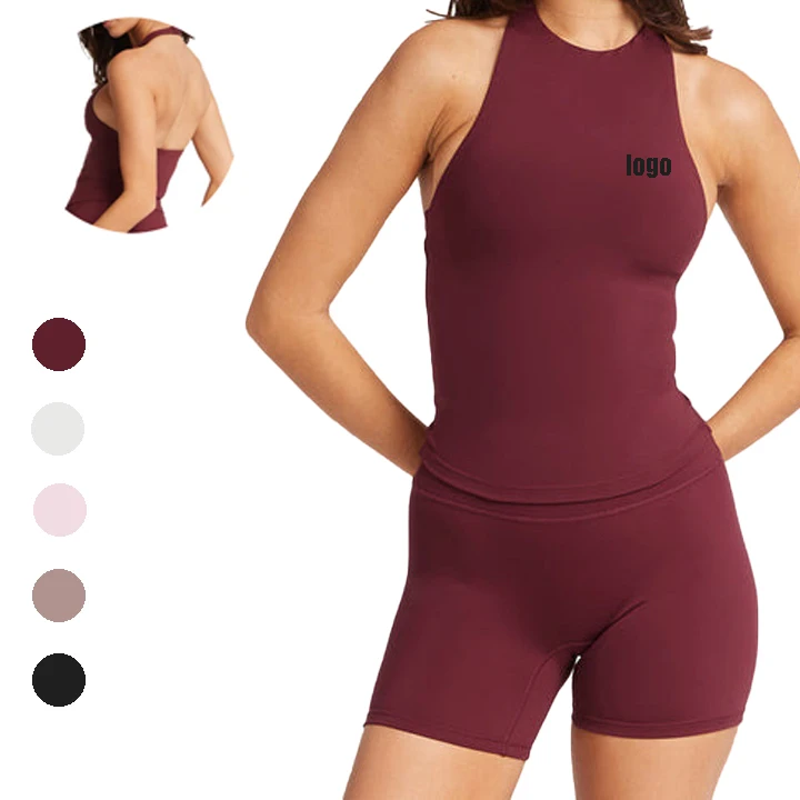 2026 Casual Halter Sleeveless Tops Round Neck Padded Gym tank Top Workout Yoga tank Top