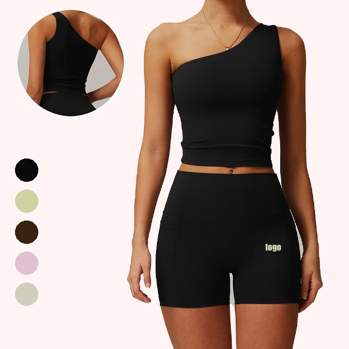 2026 One Shoulder Sleeveless Yoga Sets Fitness Women Short Activewear Cropped Tops Yoga Set