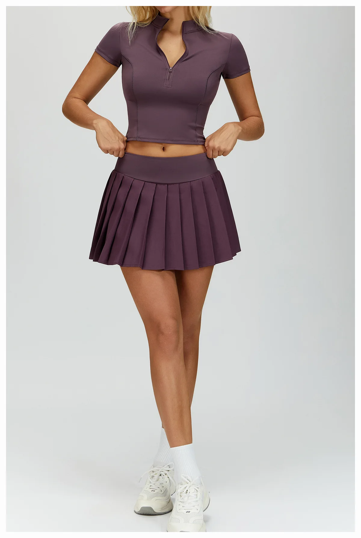 Hot Selling Breathable High-Waisted Tennis Wear Skirts Two Piece Tennis Sports Wear High Stretch Workout Tennis Skirt Set