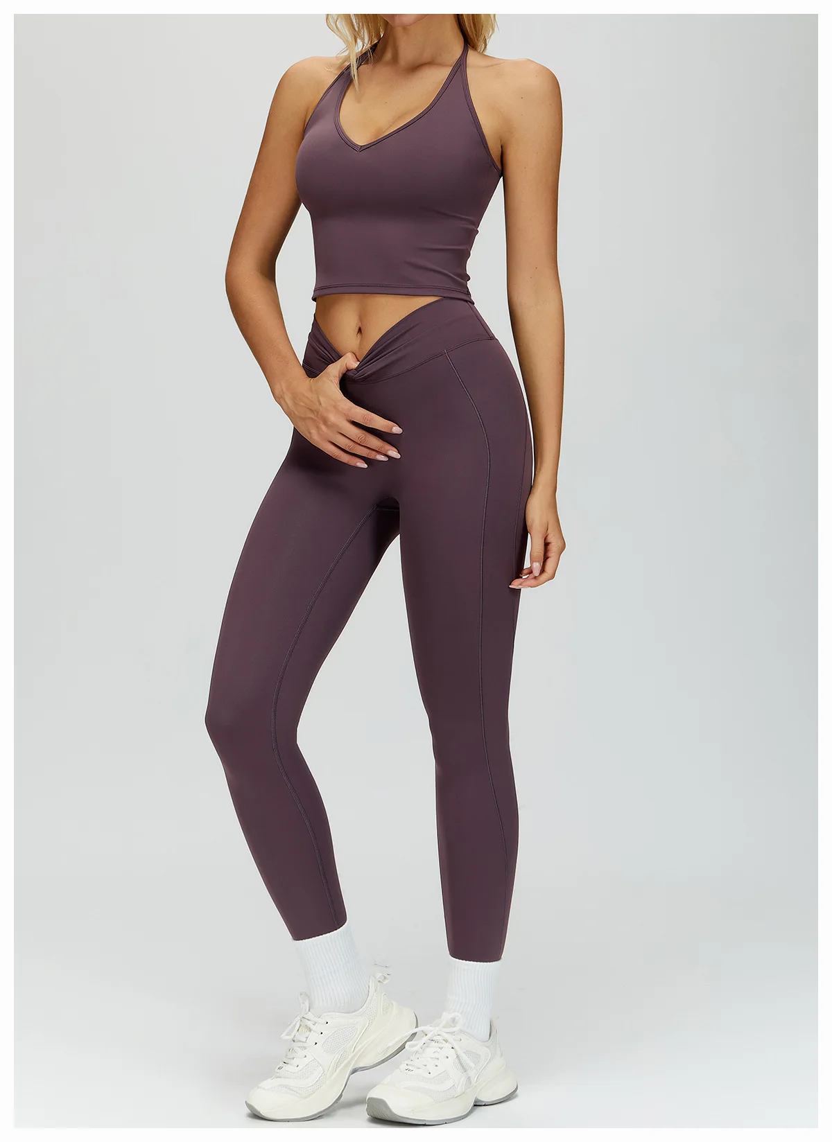 Skin-friendly Lightweight Cross V Waist Leggings Set Custom Workout Sets for Women Activewear Yoga Sets